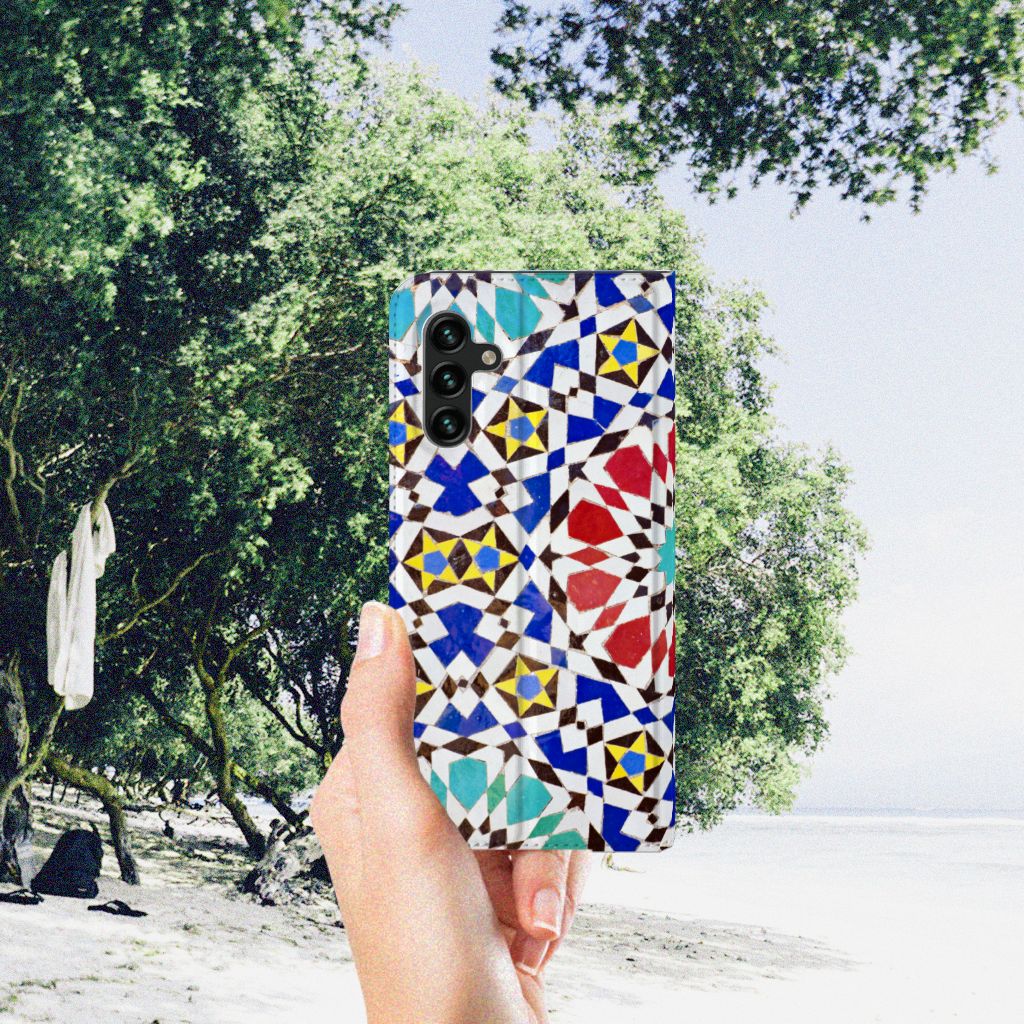 Aan design hoesjes met kunstvormen geen gebrek in onze uitgebreide collectie. Wat dacht je van dit design hoesje met Mozaïek . Dit is een kunstvorm waarbij een grote afbeelding wordt gemaakt uit een groot aantal kleine gekleurde steentjes (tesserae), die in een vloer of wand worden gemetseld. Deze gekleurde steentjes zie je terug op deze stand case met design van mozaïek. Een stand case is een van de veiligste cases die er bestaan. Een Samsung Galaxy A13 (5G) | Samsung Galaxy A04s Standcase met print zorgt voor een volledige bescherming van je smartphone en wordt aan alle zijden bedrukt met mozaïek. Verder is de houder aan de binnenzijde van TPU. De Grieken en Romeinen beheersten de kunst al. Op diverse plaatsen in Europa zijn mozaïeken teruggevonden die tot op de dag van vandaag goed bewaard zijn gebleven. Met een hoesje met mozaïek blijft jouw telefoon in tact. Je pasje en kun je in het vakje aan de binnenzijde stoppen. De case heeft ook een standaard.