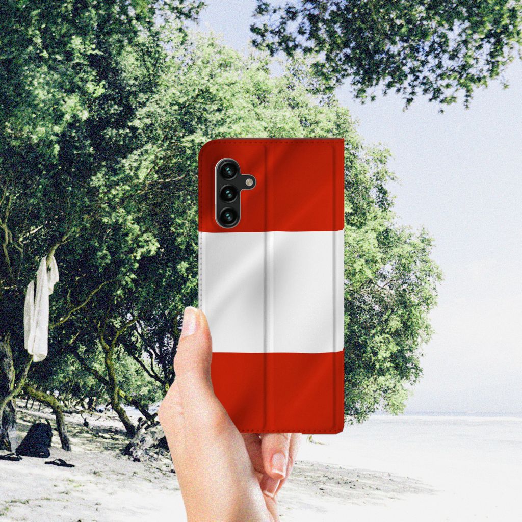 Vroeger werden vlaggen gebruikt om een boodschap over te brengen of een ridderorde aan te duiden. Tegenwoordig worden vlaggen gebruikt voor verschillende doeleinden. Een vlag kan worden gebruikt om te verwijzen naar een land, stad of beweging. Het staat symbool voor de nationaliteit van de mens. In onze collectie hebben wij alle Europese vlaggen opgenomen. De vlag wordt gedrukt op een Standcase voor de Samsung Galaxy A13 (5G) | Samsung Galaxy A04s en heeft een vakje voor pasjes. Het fijne aan dit hoesje is dat je het horizontaal als standaard neer kunt zetten. Door de magneten aan de binnenkant wordt het hoesje afgesloten. Ook bieden wij de mogelijkheid om gratis je naam toe te voegen om het hoesje helemaal af te maken. Wil je meer vrijheid om het hoesje helemaal naar eigen wens te maken? Ga dan verder met ontwerpen in ons unieke ontwerpprogramma.