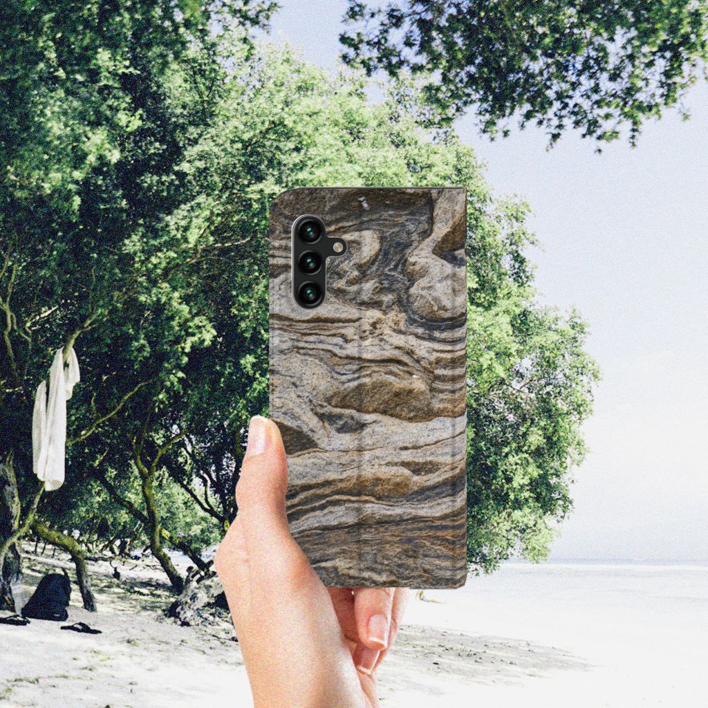 Deze Samsung Galaxy A13 (5G) | Samsung Galaxy A04s Standcase is jouw rots in de branding. Het bruine rotsachtige steen maakt van jouw stand hoesje een echte eyecatcher. Een stand case is van zichzelf al zeer fraai om dit zien, maar met dit design wordt de smartphone pas echt een begerenswaardig apparaat. Het bruine rotsachtige steen wordt bedrukt op alle zijden van de stand case, die beschikt over een vakjes voor pasjes en toebehoren en een magnetische sluiting aan de binnenkant. Verder heeft de case een houder van TPU. Met steen kun je alle kanten op, dat bewijzen we met deze collectie design hoesjes. Onze designer heeft zich overtroffen met dit boekhoesje met structuur van steen.