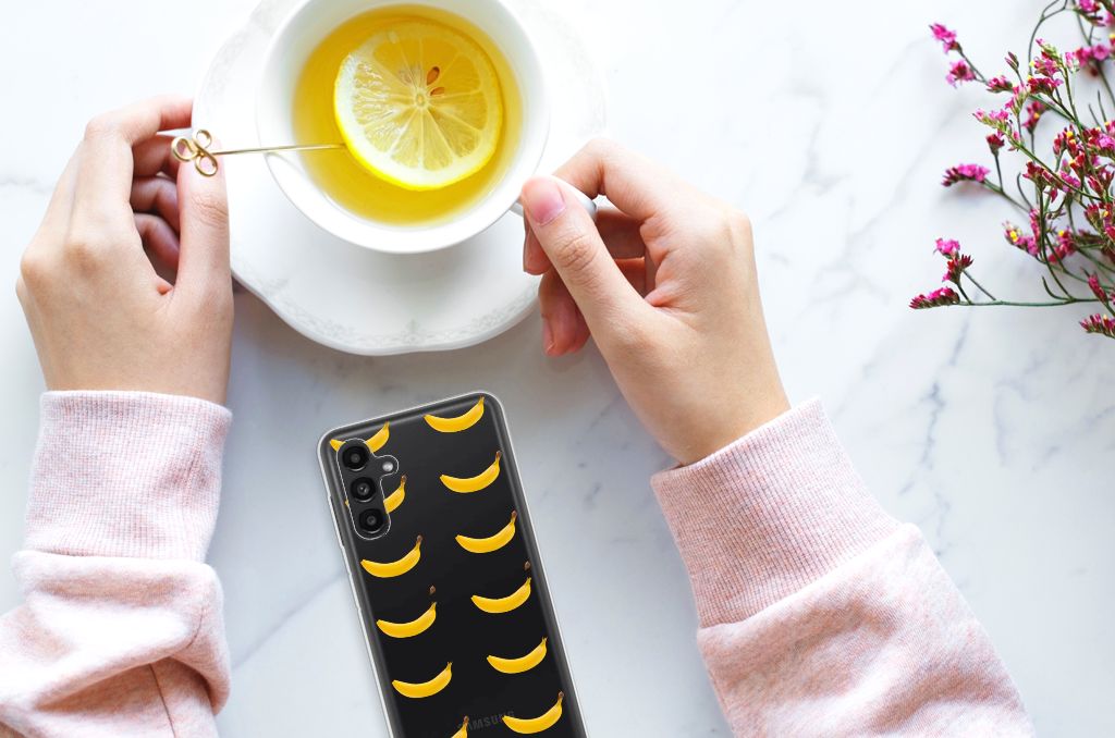 Bananen zitten tjokvol natuurlijke energie-oppeppers. Fructose, glucose, vezels… om er maar eens een paar te noemen. Een banaan is zo’n energiebom, dat wanneer je er twee eet je genoeg energie verzameld hebt om anderhalf uur vol te sporten. Deze vrucht geeft power, daarom misstaan ze ook niet op deze leuke Samsung Galaxy A13 | A04s Siliconen Case. Met het aantal bananen dat op dit hoesje staat heb je energie voor een hele maanden of misschien wel een paar maanden. Jouw smartphone blijft zijn kracht behouden als je kiest voor dit design hoesje met bananen. Het grijswit geblokte patroon op de achtergrond geeft nog wat extra’s aan de banaan. Altijd als een print van een banaan op je hoesje willen hebben? Dit is je kans. De bananen staan op een TPU case. Dit hoesje wordt alleen aan de bovenkant bedrukt en is zeer flexibel. Met het aantal bananen dat op dit hoesje staat heb je energie voor een hele maanden of misschien wel een paar maanden. De randen van het hoesje blijven transparant en worden niet bedrukt. Met dit hoesje past jouw telefoon altijd in je broekzak.