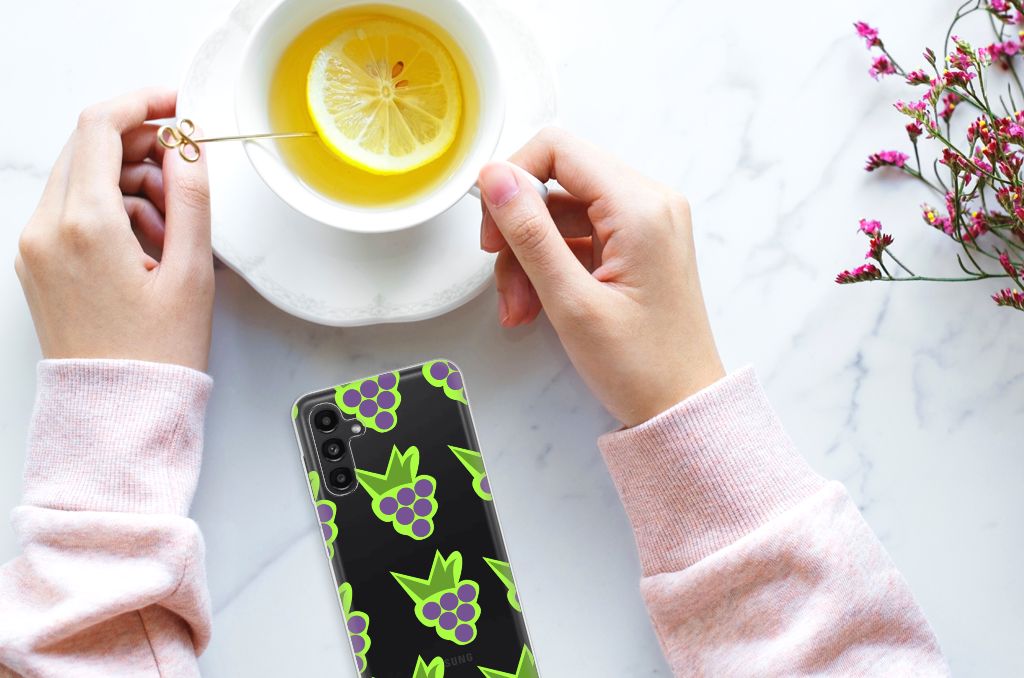 Druiven worden ook wel de ‘koningin van het fruit’ genoemd. Dus komen ze uiteraard aan bod in ons assortiment design hoesjes. Een Samsung Galaxy A13 | A04s Siliconen Case met een tros blauwe druiven maakt je ontzettend trots. Juist omdat het zo goed past bij jouw smartphone. Doordat er veel verschillende soorten druiven bestaan - groene, rode en zelfs zwarte - is het aanbod ontzettend groot. Ons aanbod tpu cases met blauwe druiven is ook zeer groot, je zult niet snel achter het net vissen. Het tpu hoesje met druiven design heeft opstaande randen, waardoor het scherm de grond niet raakt als jouw telefoon uit je handen valt. Dit leuke tpu hoesje met tros blauwe druiven is zeer flexibel en heeft opstaande randen. Ben je op zoek naar hoesjes met ander fruit erop? Je komt aan je trekken als je ons assortiment design hoesjes bekijkt. Het tpu is zeer flexibel. De randen van dit hoesje blijven transparant en worden niet bedrukt met blauwe druiven.