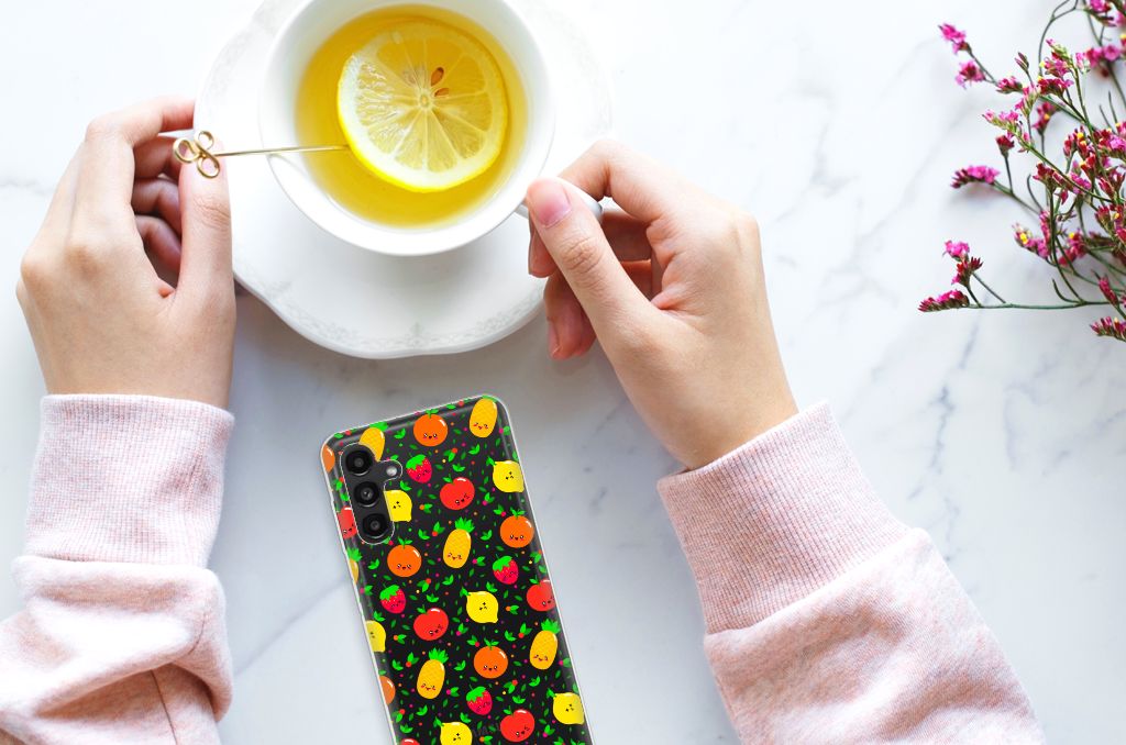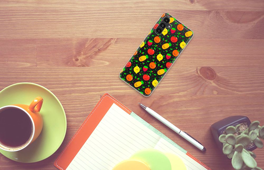 Een fris, fruitig en vrolijk hoesje, deze case met afbeeldingen van aardbeien, ananassen, appels, sinaasappels en citroenen. Minstens twee stuks fruit per dag wordt aanbevolen als dagelijkse hoeveelheid voor de mens. Dit verkleint de kans op allerlei ziekten. Dus met het aantal stukken fruit op de Samsung Galaxy A13 | A04s Siliconen Case zou je wel een maandje zoet moeten zijn. Met het hoesje zelf kun je je hele leven doen, dit is namelijk niet stuk te krijgen. Dit komt door het sterke en flexibele materiaal waarvan het gemaakt is. De vrolijk stemmende case het desing Fruits maakt jouw telefoon dus zeer duurzaam. Zorg ervoor dat jouw smartphone gezond blijft en kies voor dit hoesje met frivool fruit. Een tpu case met fruit wordt alleen aan de bovenkant bedrukt en is zeer flexibel. De randen van het hoesje blijven transparant en worden niet bedrukt met het fruit.