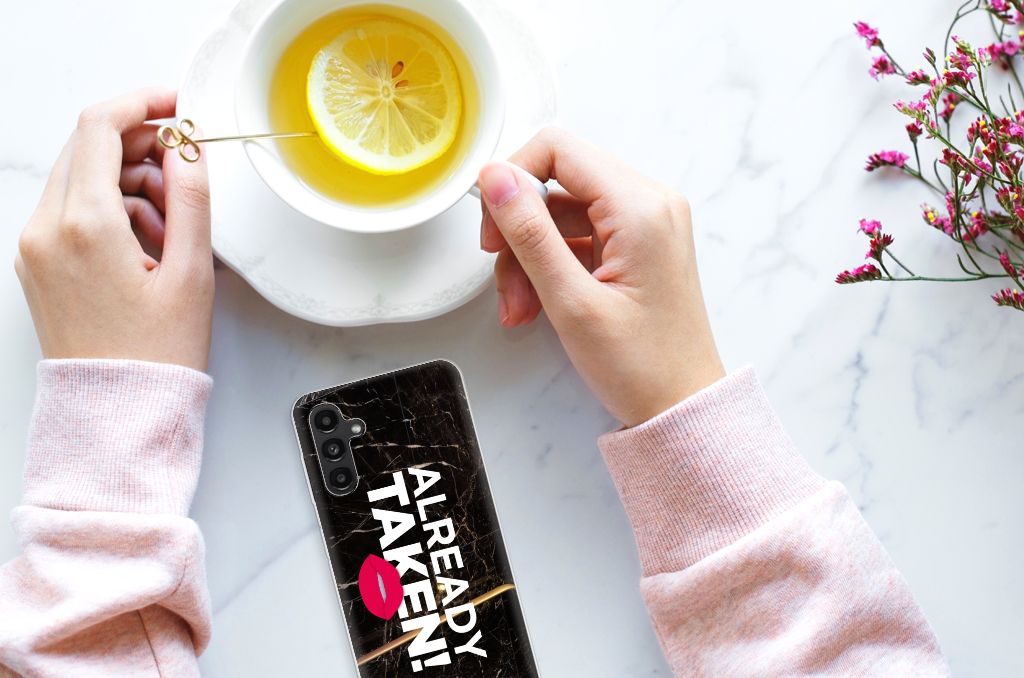 Met deze Samsung Galaxy A13 | A04s Siliconen hoesje met naam met Already Taken Black tekst maak je duidelijk dat jouw smartphone een kostbaar bezit is, waar je zeer lang over wilt beschikken. Je telefoon neem je waarschijnlijk vaak ter hand, dus dan zal de boodschap als je over dit hoesje beschikt zeker weten overkomen. De TPU case wordt alleen aan de bovenkant bedrukt en is zeer flexibel. De randen van het hoesje blijven transparant. Wil je een eigen tekst op je hoesje zetten? Dit kan ook, met onze Phone Case Designer. Deze unieke ontwerpmodule is ook geschikt om het design uit te breiden met foto’s, effecten en patronen.