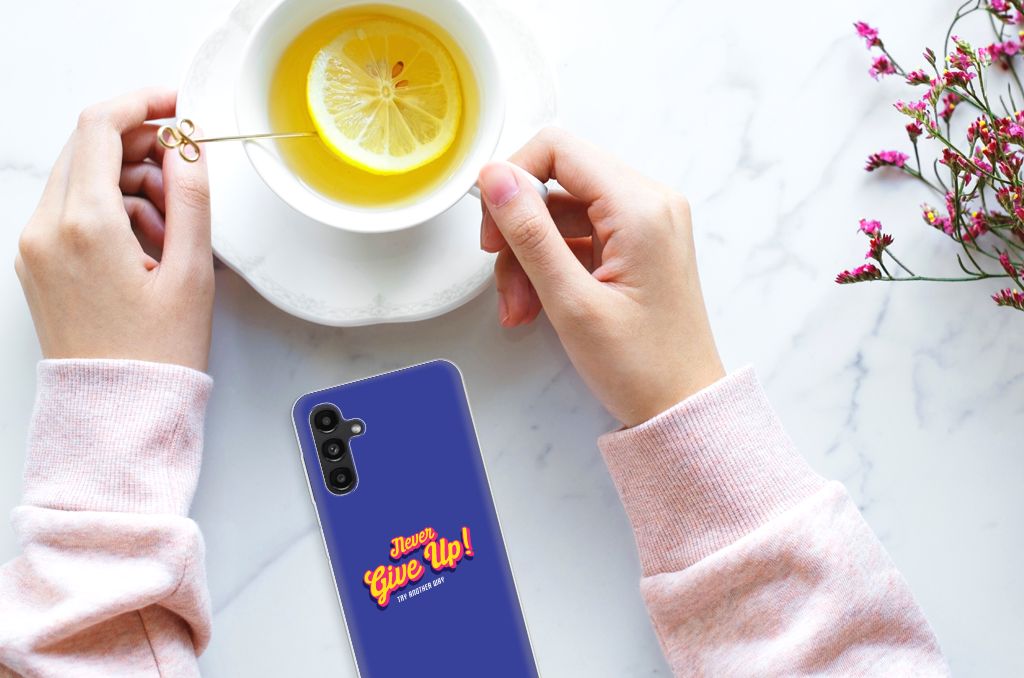 Ben je op zoek naar een uniek telefoonhoesje voor je Samsung Galaxy A13 | A04s? Dan ben je bij B2C Telecom aan het juiste adres! Speciaal voor jou hebben we dit prachtige Never Give Up design in onze collectie hoesjes opgenomen. Het design wordt bedrukt op een Siliconen hoesje met naam en is gemaakt van flexibel rubber. Het design wordt alleen aan de bovenkant van het hoesje bedrukt en de randen blijven transparant. Aan de zijkanten zijn uitsparingen gemaakt waardoor je met gemak alle knoppen en poorten kunt bedienen. Wij adviseren om dit hoesje in combinatie met een screenprotector te gebruiken voor een langere levensduur van je telefoon. Wil je dit design hoesje nog iets extra's geven? Voeg dan gratis je naam of een quote toe! Is dit design hoesje toch niet helemaal wat je zocht? Ontwerp dan zelf een hoesje in ons ontwerpprogramma.
