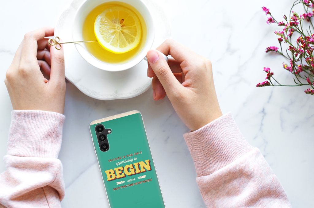 Ben je op zoek naar een uniek telefoonhoesje voor je Samsung Galaxy A13 | A04s? Dan ben je bij B2C Telecom aan het juiste adres! Speciaal voor jou hebben we dit prachtige Quote Begin design in onze collectie hoesjes opgenomen. Het design wordt bedrukt op een Siliconen hoesje met naam en is gemaakt van flexibel rubber. Het design wordt alleen aan de bovenkant van het hoesje bedrukt en de randen blijven transparant. Aan de zijkanten zijn uitsparingen gemaakt waardoor je met gemak alle knoppen en poorten kunt bedienen. Wij adviseren om dit hoesje in combinatie met een screenprotector te gebruiken voor een langere levensduur van je telefoon. Wil je dit design hoesje nog iets extra's geven? Voeg dan gratis je naam of een quote toe! Is dit design hoesje toch niet helemaal wat je zocht? Ontwerp dan zelf een hoesje in ons ontwerpprogramma.