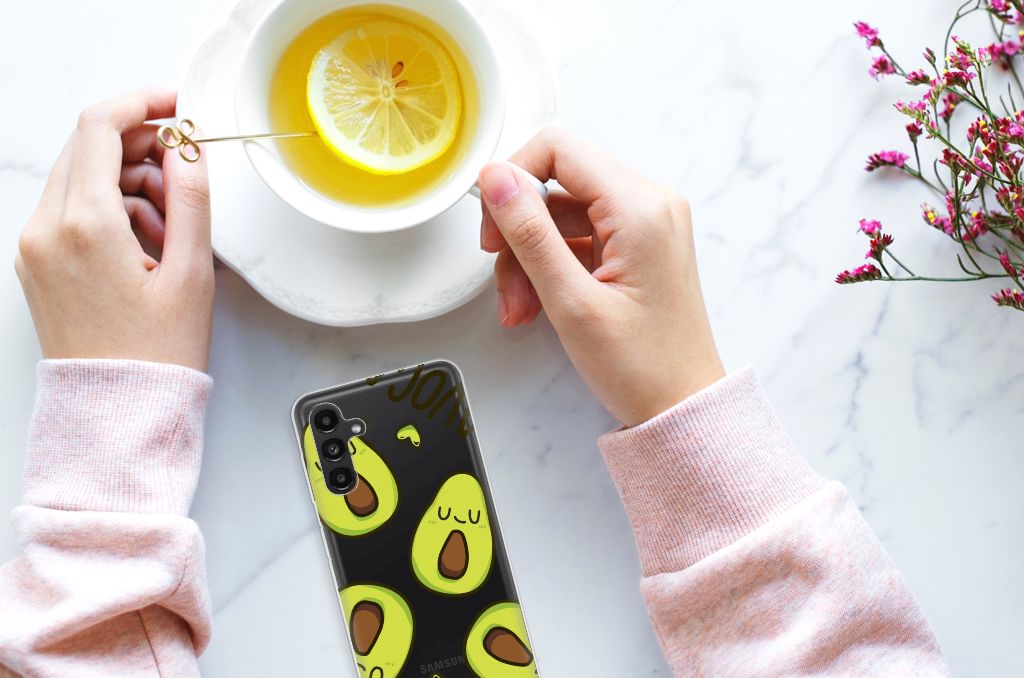 Avocado’s zijn niet alleen heel erg goed voor je, ze zijn ook super leuk op je telefoonhoesje. Dit unieke design vol schattige avocado’s zal jou en iedereen om je heen meteen opvrolijken. Nog een voordeel van dit design: deze avocado’s bederven nooit! Dit leuke Avocado Singing-ontwerp staat op een Telefoonhoesje met Naam voor de Samsung Galaxy A13 | A04s. Met deze vrolijke groene vruchten op je hoesje val jij zeker op. TPU is flexibel en onbreekbaar. Zo is je telefoon aan de achterkant en de randen heel goed beschermd. De case is aan de bovenkant bedrukt, de randen blijven transparant. Het TPU-hoesje is perfect te combineren met een screenprotector, zo zijn je telefoon en je beeldscherm perfect beschermd.