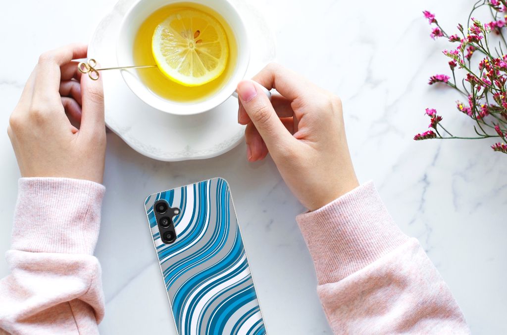 Zeer cool, dit hoesje met vooral blauwe kleuren, die in een golvende beweging jouw telefoon van een mooie uitstraling voorzien. Tijdens een zonnige vakantie aan zee is jouw smartphone perfect beschermd met dit telefoonhoesje. Het design Waves Blue van dit smartphone hoesje doet lichtjes denken aan een lolly, waarmee je een klein kind zeer blij maakt. Jouw Samsung Galaxy A13 | A04s zal er ook zeer vrolijk uitzien samen met dit design hoesje. De witte en grijze kleuren staan in mooi contrast met het blauw, waardoor de uitstraling van deze accessoire zeer mooi is. Ook voor andere kleuren kun je natuurlijk uitstekend terecht in ons assortiment. Het design staat op een TPU bumper. Dit hoesje wordt alleen aan de bovenkant bedrukt en is zeer flexibel. De randen van het hoesje blijven transparant.