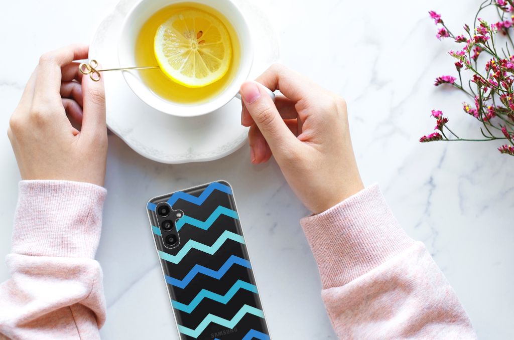Dit zigzag blauwe design hoesje is speciaal ontworpen voor jou. We hebben bewust verschillende stijlen blauw gebruikt, zodat er voldoende sprake is van variatie. Dit blauwwitte TPU bumper ziet er super strak uit. Dat kan ook niet anders, als je weet dat onze zeer talentvolle designer er hoogstpersoonlijk voor verantwoordelijk is. Hij schudt wekelijks nieuwe designs uit zijn mouw en dit zigzag blauwe hoesje is een van zijn fraaiste creaties. Een heel dik design hoesje, al zeggen we het zelf. Valt dit blauwwitte design hoesje goed bij jou? Bestel het dan vandaag nog en je hebt het morgen in huis. Het design staat op een TPU case. Dit hoesje wordt alleen aan de bovenkant bedrukt en is zeer flexibel. De randen van het hoesje blijven transparant en worden niet bedrukt. Met dit hoesje past jouw Samsung Galaxy A13 | A04s altijd in je broekzak.