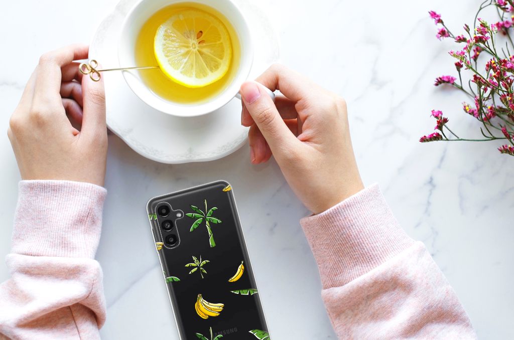 Heb jij al zin om op vakantie te gaan? Dat krijg je hoe dan ook als je één blik werpt op dit vrolijke hoesje voor je Samsung Galaxy A13 | A04s met Banana Tree design. Het fleurige tafereel van bananenbomen, bananenbladeren en bananen doet je gedachten afdwalen naar paradijselijke bountystranden met azuurblauwe zee en helderwitte zandpartijen. Kortom: dit hoesje is goed voor je humeur. Naast het luchtige design zijn daar nog meer redenen voor, want dankzij de stevige materialen weet je zeker dat dit TPU Case je telefoon altijd optimaal beschermt Dit hoesje wordt alleen aan de bovenkant bedrukt en is zeer flexibel. De randen van het hoesje blijven transparant. Met dit hoesje breng je jezelf in zomerse sferen en gun je jezelf een krasvrije telefoon.