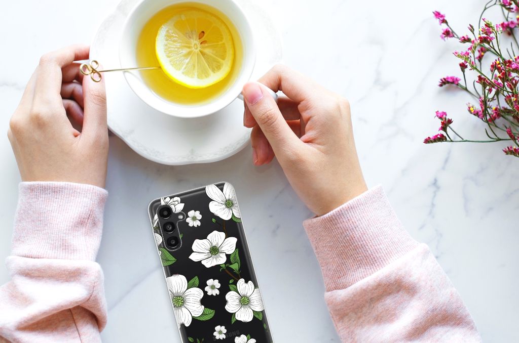 Ben je op zoek naar een uniek telefoonhoesje voor je Samsung Galaxy A13 | A04s? Dan ben je bij B2C Telecom aan het juiste adres! Speciaal voor jou hebben we dit prachtige Dogwood Flowers design in onze collectie hoesjes opgenomen. Het design wordt bedrukt op een TPU Case en is gemaakt van flexibel rubber. Het design wordt alleen aan de bovenkant van het hoesje bedrukt en de randen blijven transparant. Aan de zijkanten zijn uitsparingen gemaakt waardoor je met gemak alle knoppen en poorten kunt bedienen. Wij adviseren om dit hoesje in combinatie met een screenprotector te gebruiken voor een langere levensduur van je telefoon. Wil je dit design hoesje nog iets extra's geven? Voeg dan gratis je naam of een quote toe! Is dit design hoesje toch niet helemaal wat je zocht? Ontwerp dan zelf een hoesje in ons ontwerpprogramma.