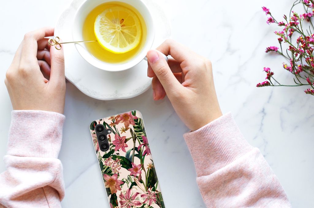 Dit Flowers design is een zegen voor de mens en zijn smartphone. De paarswitte bloemen en groene bladeren op deze Samsung Galaxy A13 | A04s TPU Case geven jouw smartphone een zeer sierlijke uitstraling. Je wordt er ook meteen vrolijker van als je aan het appen, mailen of aan het bellen bent. Valt dan je telefoon op de grond, dan zal er dankzij de tpu case met paarswitte bloemen en groene bladeren geen schade ontstaan. Helemaal niet als je er een screenprotector bij hebt gekocht. Onze tpu cases met paarswitte bloemen en groene bladeren zien er zeer prettig uit en zijn heel praktisch, getuige onder meer de opstaande randen en het flexibele materiaal. Alleen de achterkant van de tpu case wordt bedrukt met paarswitte bloemen en groene bladeren, de randen blijven transparant. Op deze tpu case kun je trouwens ook in no time zelf foto’s van jouw favoriete bloemen zetten.