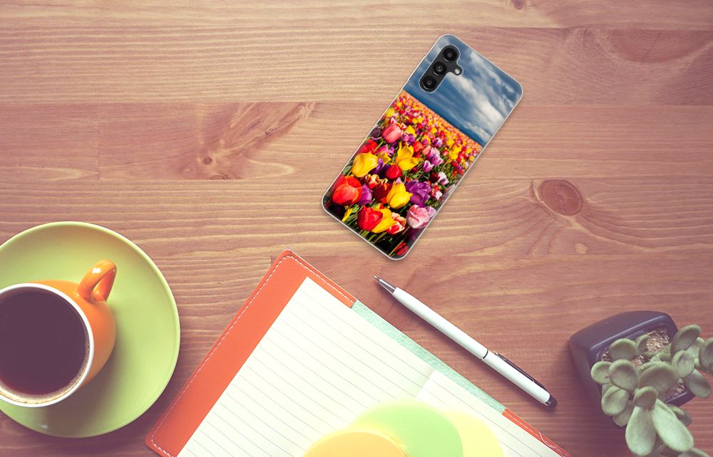 De tulp is een oer-Nederlandse bloem en heeft een lange geschiedenis. Deze Samsung Galaxy A13 | A04s TPU Case met Tulpen ziet er bijzonder kleurrijk uit. Dit fleurige smartphone hoesje geeft een bijzondere bescherming van jouw apparaat. Tulpen zijn ideaal voor een kleurrijk begin van het tuinseizoen. Iedereen wordt er vrolijk van om te zien hoe deze bloemen het voorjaar kleur geven en het begin van de warmere tijd van het jaar aankondigen. Dan kan het toch niet anders of jij wordt heel erg blij van deze tpu case met tulpen? Deze tpu case is zeer flexibel en past altijd in je broekzak. Het materiaal is zeer elastisch en onbreekbaar. De case wordt niet aan alle zijden bedrukt met tulpen. De randen blijven transparant. Je kunt ook zelf een tpu case maken met daarop jouw favoriete bloem.
