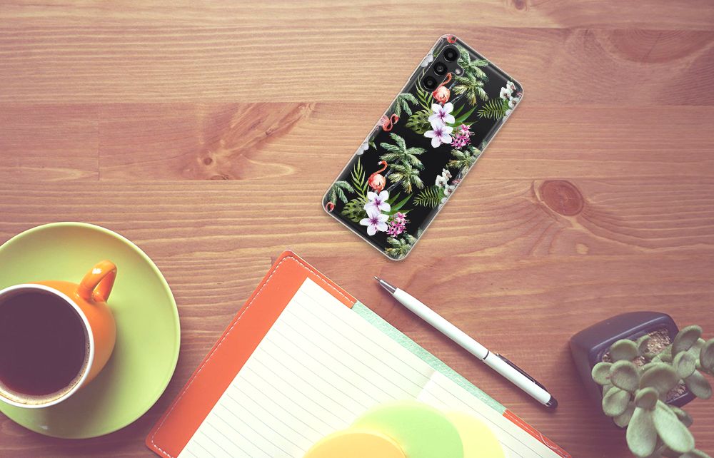 Een Samsung Galaxy A13 | A04s TPU Hoesje met Flamingo Palms is in vele opzichten bijzonder. De rode flamingo op het hoesje kent zijn oorsprong in het Caraïbische gebied. Stel dat je in deze regio vakantie aan het vieren bent, dan val je zonder meer op met dit hoesje met flamingo’s en palmbomen. Deze tpu case beschermt je telefoon met name aan de achterkant en de zijkanten. Deze tpu case met flamingo’s en palmbomen is op maat gemaakt voor jouw smartphone en ligt altijd goed in je hand. De TPU case met flamingo’s en palmbomen en is ook zeer flexibel. De zijkanten van case blijven transparant.