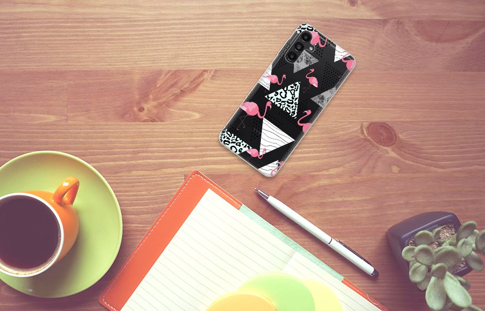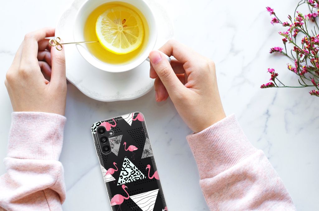 Een Samsung Galaxy A13 | A04s TPU Hoesje met Flamingo Triangle is in vele opzichten bijzonder. De rode flamingo op het hoesje komt oorspronkelijk uit het Caraïbische gebied. Stel dat je in deze regio vakantie aan het vieren bent, dan val je zonder meer op met dit hoesje met flamingo’s en driehoeken. Deze tpu case met flamingo’s en driehoeken beschermt je telefoon met name aan de achterkant en de zijkanten, is op maat gemaakt voor jouw smartphone en ligt altijd goed in je hand. De TPU case met flamingo’s en driehoeken en is ook zeer flexibel. De zijkanten blijven transparant.
