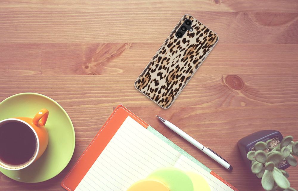 Het luipaard wordt ook wel een panter genoemd. De bruingele vacht met een patroon van rozetachtige vlekken geeft een hele goede schutkleur. Dit zie je ook op een fraaie manier afgebeeld op dit super stoere hoesje met luipaardprint. Mensen die indruk willen maken kopen deze tpu case met Leopard print. Een Samsung Galaxy A13 | A04s TPU Hoesje is erg flexibel en stevig. Het is praktisch – door het elastische materiaal neem je de telefoon makkelijk met je mee – en beschermt jouw smartphone aan de achterzijde en zijkanten zeer goed. Het luipaard is sterk en behendig en wellicht typeert jou dat ook wel. Dan past dit hoesje met luipaard perfect bij jou. De houder van TPU is minstens zo sterk als het luipaard. Jouw telefoon is zeer goed beschermd. De case heeft alle uitsparingen die nodig zijn. De randen blijven transparant. Enkele de bovenzijde wordt bedrukt met luipaardprint.