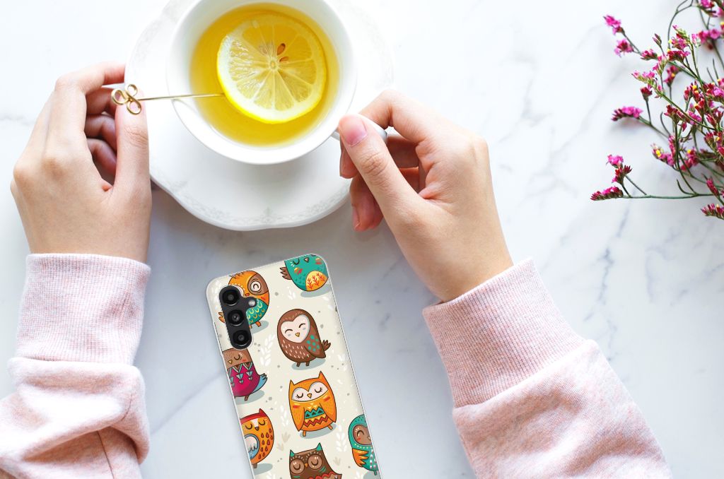 Deze Samsung Galaxy A13 | A04s TPU Hoesje met Vrolijke Uilen is echt iets voor de nachtbrakers onder ons. De uil is zoals je weet bij uitstek een vogel die in de nachtelijke uren actief is. Ben jij ook iemand die s ’nachts tot leven komt, dan is deze tpu case met uilen in felle kleuren echt iets voor jou. Als je tot in de late uurtjes op stap bent, komt het goed uit dat jouw smartphone zeer goed is beschermd met deze tpu case met uilen. De case met uilen heeft opstaande randen aan de voorzijde, waardoor het touchscreen de grond niet raakt als de smartphone uit je handen valt. Verder is het onbreekbare TPU zeer flexibel en schokabsorberend. Dit komt het design ten goede. De zijkanten van de TPU case met print van uilen worden niet bedrukt, maar de bovenzijde wel. De wat ruigere types hebben veel baat bij deze tpu case met uilen in felle kleuren.
