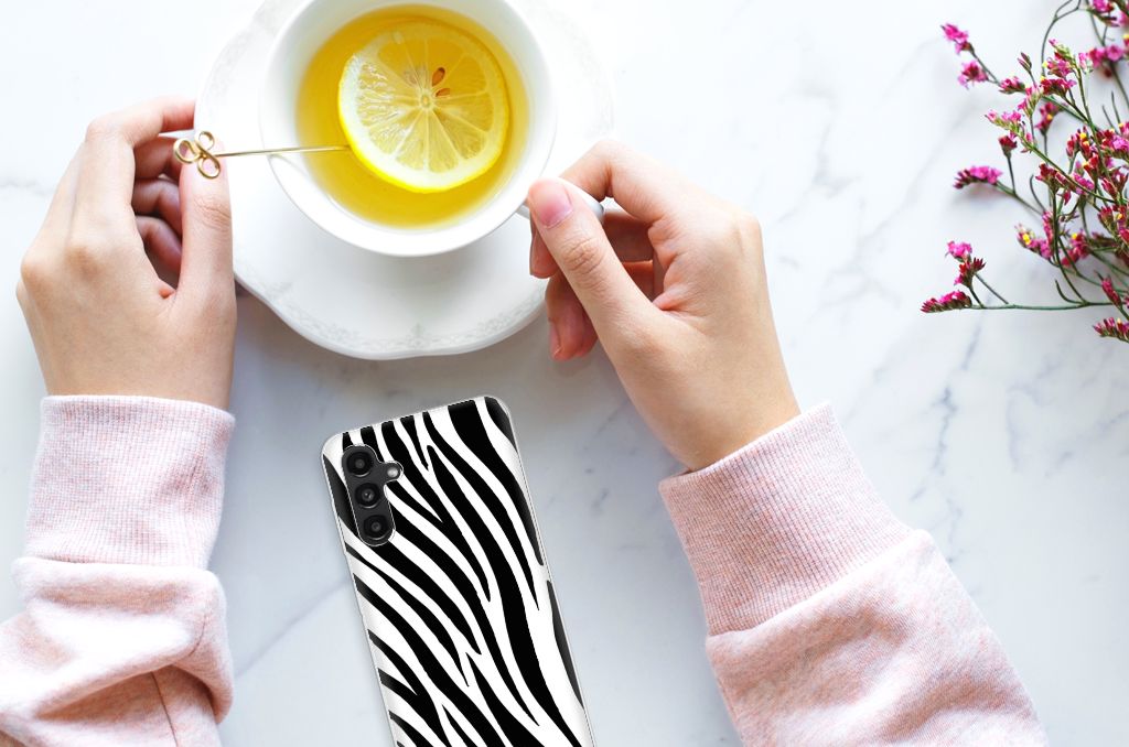 Deze Samsung Galaxy A13 | A04s TPU Hoesje met zwart en witte zebra strepen kan exclusief in het bezit van jou komen. Zeker als je er zelf nog unieke teksten en/of beelden aan toevoegt van jezelf. Je hoesje krijgt dan een eigen identiteit, net zoals de witte en zwarte strepen uniek zijn bij iedere Zebra. Deze zijn te vergelijken met de vingerafdrukken bij de mens. De strepen en patronen zijn nooit identiek aan die van een andere zebra. Ben jij toe aan een uniek tpu case? Pak dan dit design met zebra strepen als basis. Het tpu hoesje is zeer flexibel en wordt alleen aan de bovenzijde bedrukt. De randen van dit flexibele hoesje blijven doorzichtig. Een zebra gebruikt de strepen ook om zich te camoufleren in de omgeving om zo uit het zicht te blijven van de roofdieren. Jij zorgt voor de perfecte bescherming van je smartphone met dit design hoesje in zebra kleuren.