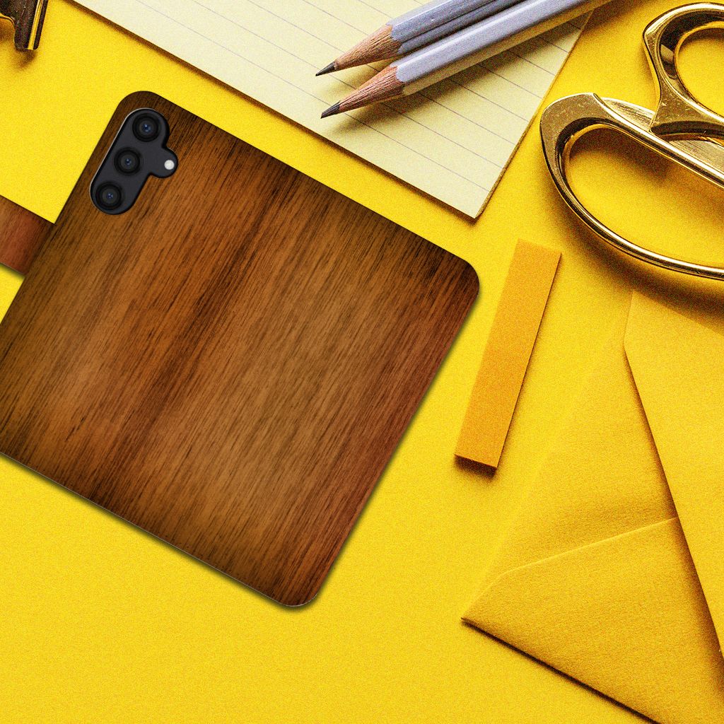 Samsung Galaxy A15 Book Style Case met pasjeshouder Donker Hout