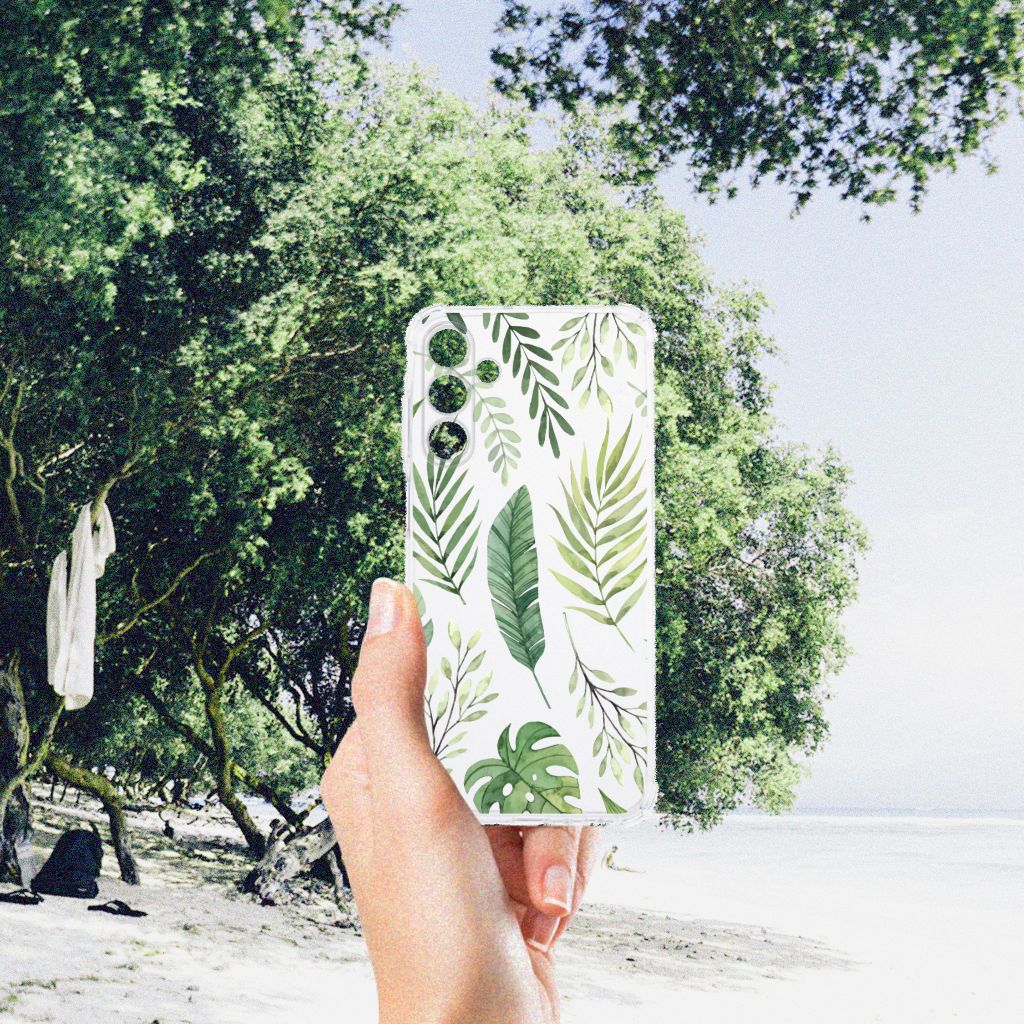 Ben je op zoek naar een uniek telefoonhoesje voor je Samsung Galaxy A15? Dan ben je bij B2C Telecom aan het juiste adres! Speciaal voor jou hebben we dit prachtige Leaves design in onze collectie hoesjes opgenomen. Het design wordt bedrukt op een Case en is gemaakt van flexibel rubber. Het hoesje is perfect voor de actieve smartphonegebruiker door de opstaande randen/hoeken. Denk aan mensen die veel sporten, reizen of wandelen en net iets meer zekerheid willen als het op hun geliefde telefoon aankomt. Het design wordt alleen aan de bovenkant van het hoesje bedrukt en de randen blijven transparant. Aan de zijkanten zijn uitsparingen gemaakt waardoor je met gemak alle knoppen en poorten kunt bedienen. Wij adviseren om dit hoesje in combinatie met een screenprotector te gebruiken voor een langere levensduur van je telefoon. Wil je dit hoesje nog iets extra's geven? Voeg dan gratis je naam of een quote toe! Is dit design hoesje toch niet helemaal wat je zocht? Ontwerp dan zelf een hoesje in ons ontwerpprogramma.