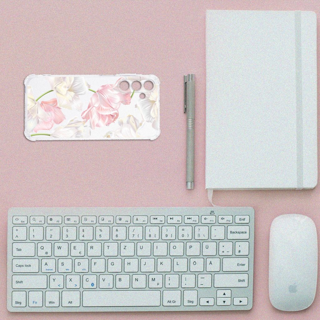 Ben je op zoek naar een uniek telefoonhoesje voor je Samsung Galaxy A15? Dan ben je bij B2C Telecom aan het juiste adres! Speciaal voor jou hebben we dit prachtige Lovely Flowers design in onze collectie hoesjes opgenomen. Het design wordt bedrukt op een Case en is gemaakt van flexibel rubber. Het hoesje is perfect voor de actieve smartphonegebruiker door de opstaande randen/hoeken. Denk aan mensen die veel sporten, reizen of wandelen en net iets meer zekerheid willen als het op hun geliefde telefoon aankomt. Het design wordt alleen aan de bovenkant van het hoesje bedrukt en de randen blijven transparant. Aan de zijkanten zijn uitsparingen gemaakt waardoor je met gemak alle knoppen en poorten kunt bedienen. Wij adviseren om dit hoesje in combinatie met een screenprotector te gebruiken voor een langere levensduur van je telefoon. Wil je dit hoesje nog iets extra's geven? Voeg dan gratis je naam of een quote toe! Is dit design hoesje toch niet helemaal wat je zocht? Ontwerp dan zelf een hoesje in ons ontwerpprogramma.