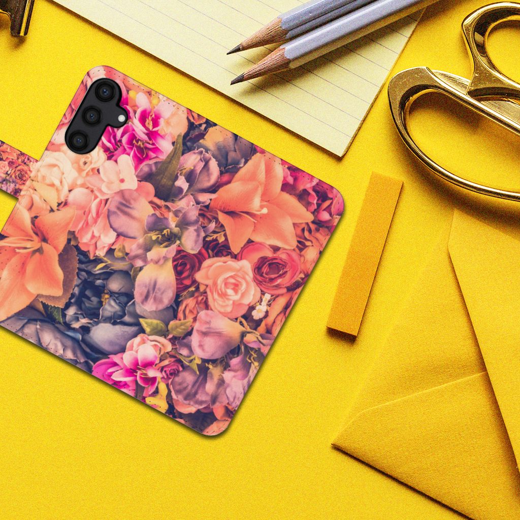 Bijna iedereen wordt wel blij van een bosje bloemen en dus worden we ook blij als er bloemen op ons boekhoesje staan afgebeeld. Dit boeket van roze, oranje en paarse bloemen is lekker opvallend maar geeft het Samsung Galaxy A15 Hoesje ook een sierlijke uitstraling. Zo wordt je direct vrolijk als je bezig bent met jouw smartphone, bijvoorbeeld tijdens het appen of bellen. Waar je ook vrolijk van zult worden is de goede bescherming die dit smartphone hoesje biedt. Het is een boekhoesje waardoor alle zijden van jouw telefoon worden beschermd. Als hij dan per ongeluk een keer op de grond valt, is er niets aan de hand. Door het magnetische sluitlipje blijft ook het beeldscherm beschermd als hij de grond raakt.