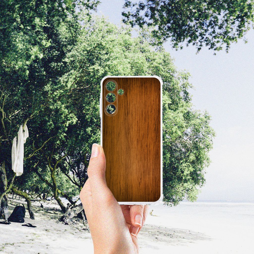 Ben je op zoek naar een uniek telefoonhoesje voor je Samsung Galaxy A15? Dan ben je bij B2C Telecom aan het juiste adres! Speciaal voor jou hebben we dit prachtige Donker Hout design in onze collectie hoesjes opgenomen. Het design wordt bedrukt op een Stevig Telefoonhoesje en is gemaakt van flexibel rubber. Het hoesje is perfect voor de actieve smartphonegebruiker door de opstaande randen/hoeken. Denk aan mensen die veel sporten, reizen of wandelen en net iets meer zekerheid willen als het op hun geliefde telefoon aankomt. Het design wordt alleen aan de bovenkant van het hoesje bedrukt en de randen blijven transparant. Aan de zijkanten zijn uitsparingen gemaakt waardoor je met gemak alle knoppen en poorten kunt bedienen. Wij adviseren om dit hoesje in combinatie met een screenprotector te gebruiken voor een langere levensduur van je telefoon. Wil je dit hoesje nog iets extra's geven? Voeg dan gratis je naam of een quote toe! Is dit design hoesje toch niet helemaal wat je zocht? Ontwerp dan zelf een hoesje in ons ontwerpprogramma.
