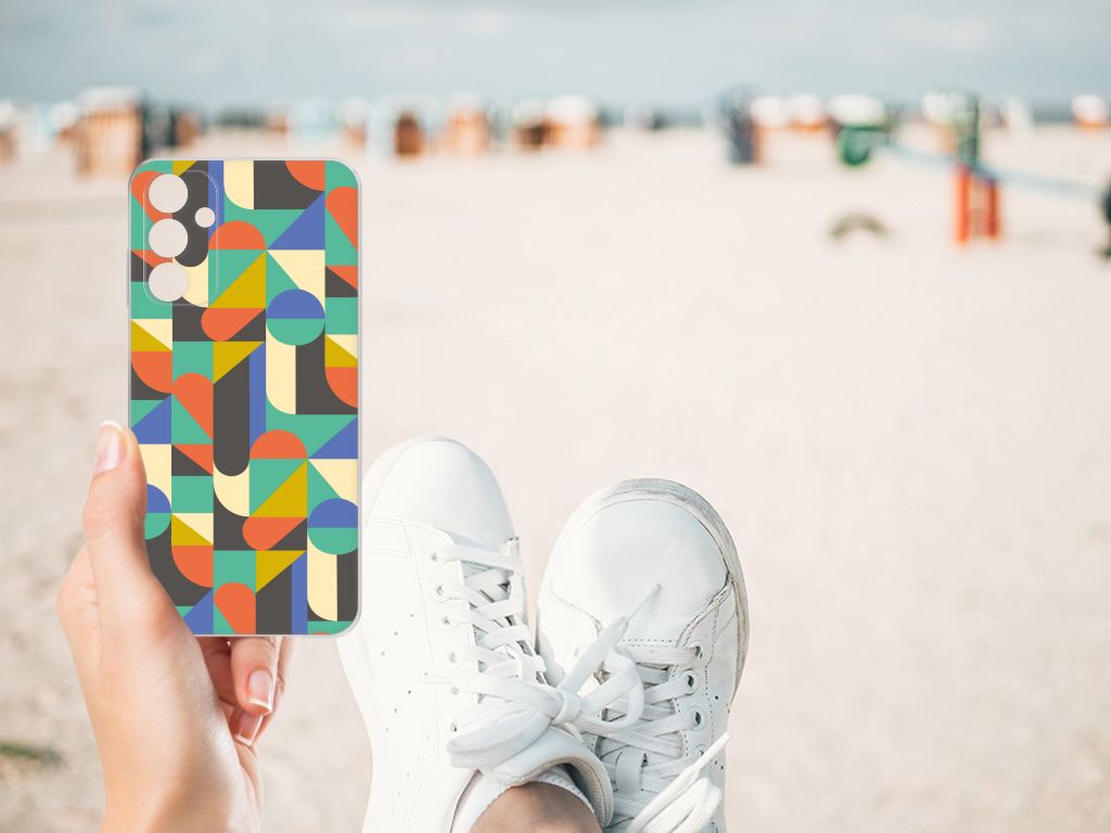 Voor de mensen die een beetje artistiek zijn, is er dit design hoesje met kleuren in een soort van Funky Retro stijl. Je krijgt er bijna een beetje een nostalgisch gevoel bij. De opdruk op dit design hoesje gaat nooit verloren en gaat dus net zo lang mee als dit gave patroon. De print wordt in ons eigen magazijn bedrukt, met zeer duurzame inkt. De case heeft voldoende uitsparingen, dus als je jouw Samsung Galaxy A15 hebt beloond met dit hoesje ga je een beetje terug in de tijd. Je hoeft het de telefoon nooit uit dit artistieke design hoesje te halen. Het unieke design, door B2C Telecom ontworpen, staat op een TPU bumper. Dit hoesje wordt alleen aan de bovenkant bedrukt en is zeer flexibel. De randen van het hoesje blijven transparant en worden niet bedrukt. Met dit hoesje past jouw telefoon altijd in je broekzak.