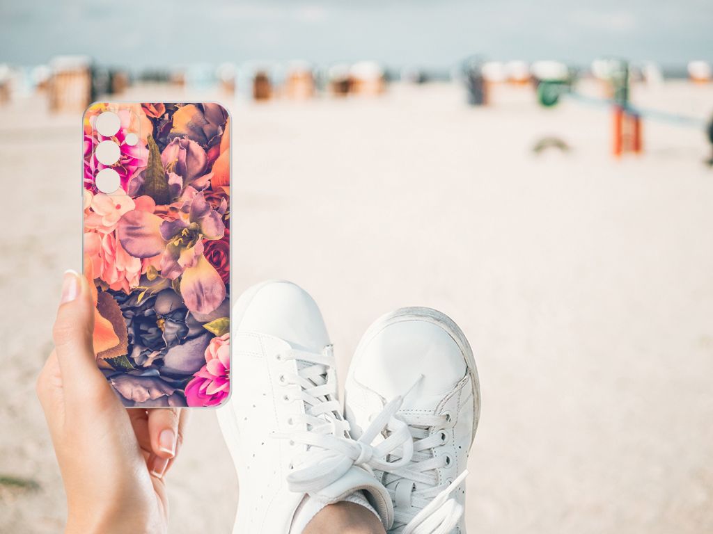 Dit Bosje Bloemen doet een mens en zijn smartphone goed. De oranje, paarse en roze bloemen op deze Samsung Galaxy A15 TPU Case geven jouw smartphone een zeer sierlijke uitstraling. Je wordt er ook meteen vrolijker van als je aan het appen, mailen of aan het bellen bent. Valt dan je telefoon op de grond, dan zal er dankzij de tpu case met oranje, paarse en roze bloemen geen schade ontstaan. Helemaal niet als je er een screenprotector bij hebt gekocht. Onze tpu cases met oranje, paarse en roze bloemen zien er zeer prettig uit en zijn heel praktisch, getuige onder meer de opstaande randen en het flexibele materiaal. Alleen de achterkant van de tpu case wordt bedrukt met oranje, paarse en roze bloemen. Op deze tpu case is het ook mogelijk je eigen ontwerp te zetten. In no time ontwerp je zelf een tpu case met daarop foto’s van jouw favoriete bloemen.