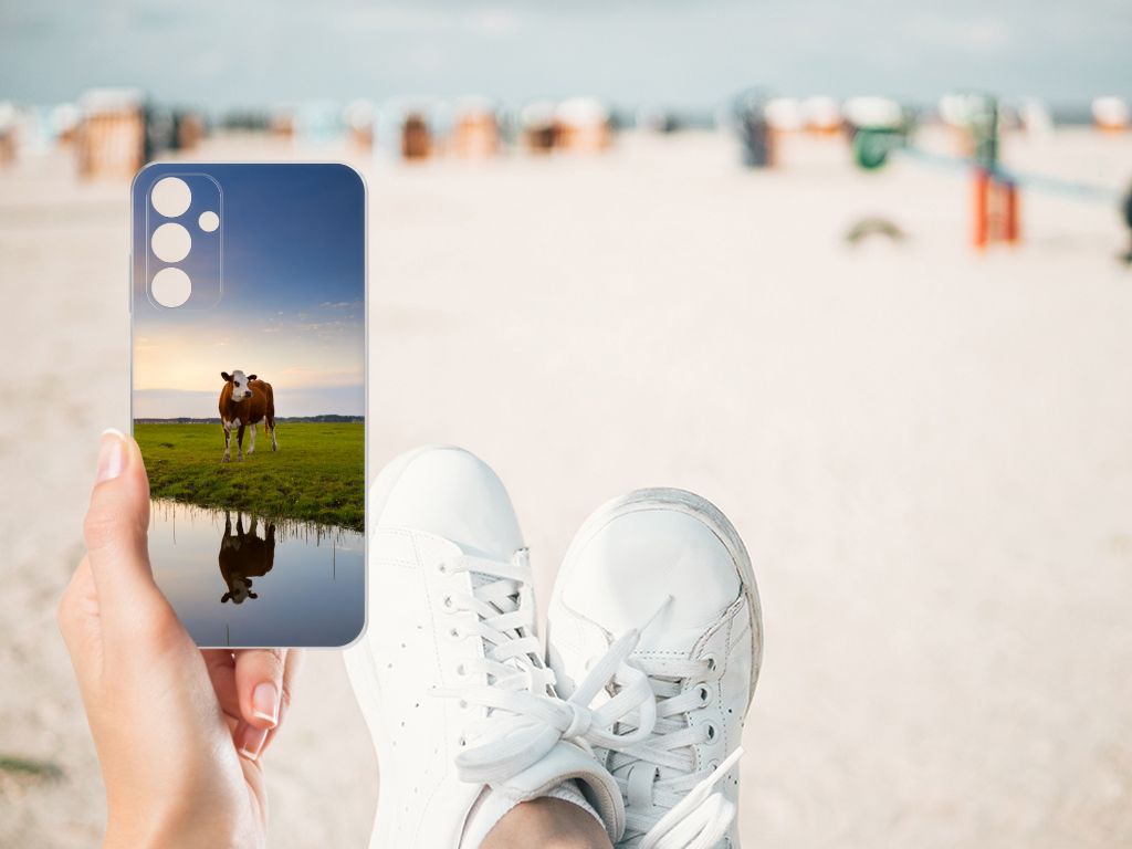 Het levert een idyllisch plaatje op, dit hoesje met een koe en ondergaande zon op de achtergrond. Door een koe buiten te laten lopen en grazen, hebben ze minder kans om ziek te worden. De Koe graast het liefst met soortgenoten, al zijn deze een stukje van de koe op de case verwijderd. Dit levert ook een mooi plaatje op, zoals je kunt zien op dit design hoesje. Dit tpu hoesje met koeien ziet er flexibel uit en is voorzien van alle uitsparingen. Een Samsung Galaxy A15 TPU Hoesje met koeien beschermt jouw smartphone vooral aan de achterkant en zijkanten. De zijkanten blijven transparant, de rest van het hoesje is bedrukt. Koeien herkauwen het liefst liggend, behalve wanneer het regent. Zo goed als grazen voelt voor koeien, zo duurzaam zal jouw smartphone blijven met dit design hoesje. Het TPU is schokabsorberend en niet te breken. De TPU case past altijd in je broekzak.