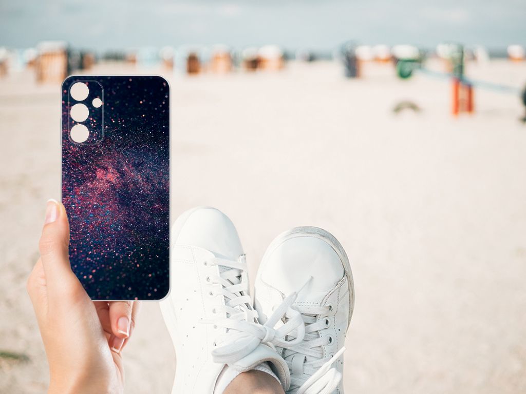Je waant je in de zevende hemel met dit kunstzinnige, glitterachtige design hoesje met paarse en blauwe kleuren tegen een inktzwarte achtergrond. Het smartphone hoesje heeft ook een wat science fiction achtige allure. Met deze design Stars case zul je zeker opvallen. Als dit je bedoeling is, bestel dat snel dit waanzinnig mooie product voor je Samsung Galaxy A15. Het telefoonhoesje is van alle gemakken voorzien en combineert een hele fraaie uitstraling met maximaal comfort. Bovendien is het gemaakt van zeer stevig en flexibel materiaal. Het unieke design, door B2C Telecom ontworpen, staat op een TPU Hoesje. Dit hoesje wordt alleen aan de bovenkant bedrukt en is zeer flexibel. De randen van het hoesje blijven transparant en worden niet bedrukt. Met dit hoesje past jouw telefoon altijd in je broekzak.