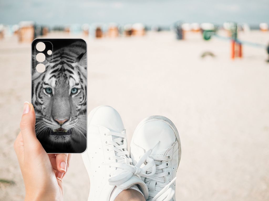 Omdat de Witte Tijger zo bijzonder is, zijn wij bereid deze voor zeer lage kosten op een tpu case te zetten. Dit kunnen we zo goedkoop doen omdat we het drukwerk in eigen beheer doen. Witte tijgers leefden lange tijd in de bossen van India, Bangladesh, Nepal, Bhutan en China en kunnen wel 257 kilo wegen. Dit zwaargewicht kunnen we bedrukken op verschillende soorten hoesjes, zoals deze tpu cases. Deze Samsung Galaxy A15 TPU Hoesje kan exclusief in het bezit van jou komen. Zeker als je er zelf nog unieke teksten en/of beelden aan toevoegt. Het tpu hoesje is zeer flexibel en wordt alleen aan de bovenzijde bedrukt. De randen van dit flexibele hoesje blijven doorzichtig. Tegenwoordig zijn witte tijgers alleen in gevangenschap te bewonderen. Jij zorgt voor een goede bescherming van je smartphone met dit design hoesje met witte tijger.