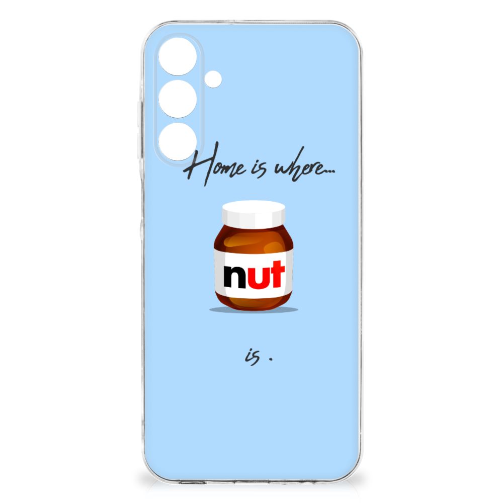 Ben je liefhebber van chocoladepasta, dan is dit het perfecte Samsung Galaxy A16 Siliconen Case voor jou. De chocoladepasta is enorm populair, dus is het niet zo heel gek dat je een ‘Nut Home’ tpu case in een blauwe kleur aantreft in ons assortiment design hoesjes met illustraties. Dit tpu hoesje is zeer flexibel en past altijd in je broekzak. Alleen de bovenkant van dit hoesje wordt door ons bedrukt in blauwe kleur met de pasta, op zeer duurzame manier. Mensen die houden van de bekendste pasta van het moment, kiezen voor deze blauwe tpu case. Er staan geen illustraties op de zijkanten van een tpu case. Je kunt ook een eigen tekst toevoegen aan het opvallende design.