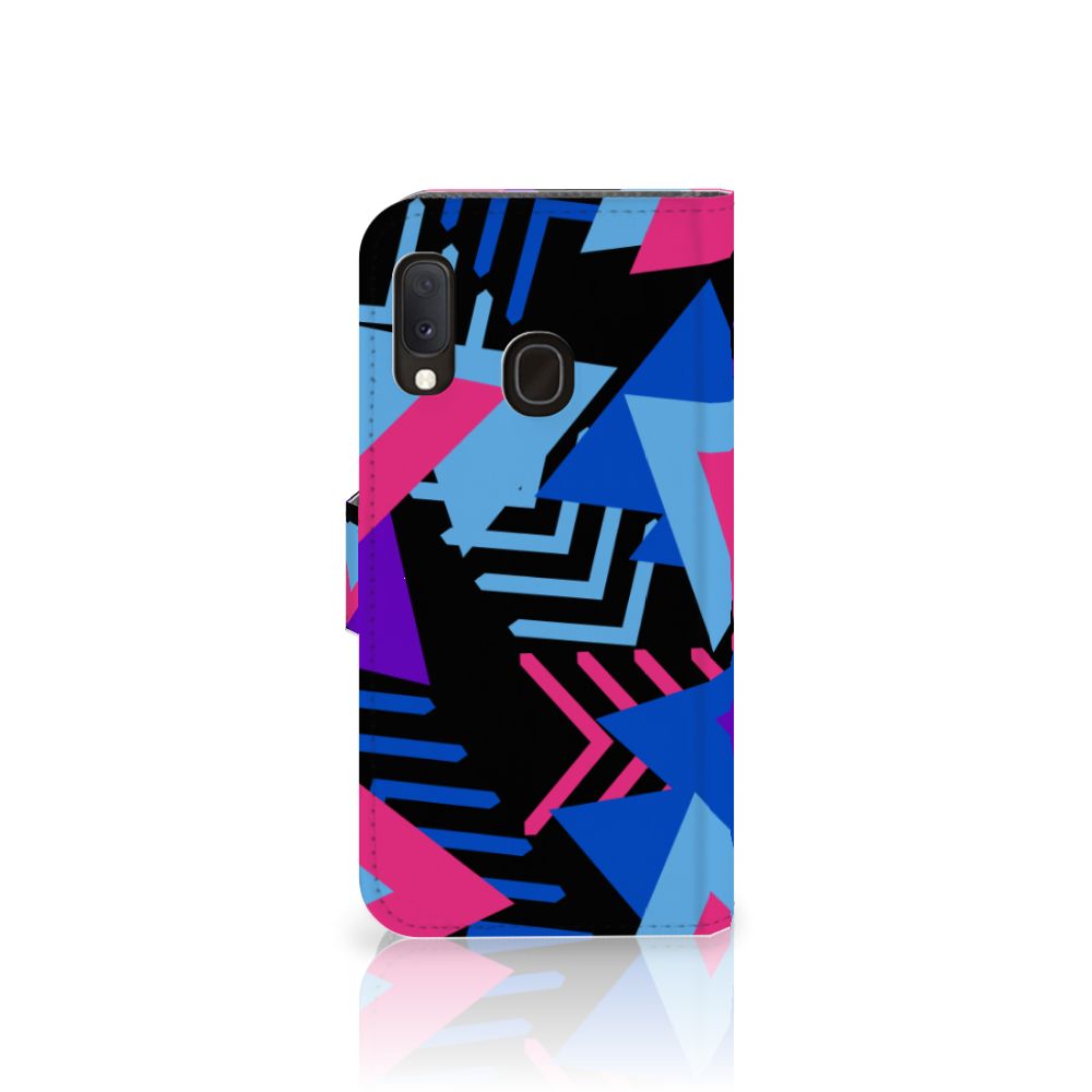 Dit fraaie hoesje met het design Funky Triangle is alles behalve eenvoudig en sober. Dat komt goed uit, want je hebt natuurlijk ook geen doorsnee telefoon gekocht. Mocht je dat wel hebben gedaan, dan wordt hij meteen speciaal als je een Samsung Galaxy A20e Book Case koopt voor een spotprijsje. Een ding is zeker: opvallen ga je beslist met dit hoesje met paarse, roze en blauwe driehoeken. Jij zult in je element zijn met dit design hoesje met paarse, roze en blauwe driehoeken, omdat het er schitterend uitziet en jouw telefoon perfect beschermt. Het smartphonehoesje beschermt jouw telefoon aan alle zijden en beschikt over verschillende houders voor pasjes en briefgeld. De case sluit perfect af met een lipje aan de buitenkant. De houder aan de binnenzijde is van TPU. Alle zijden van het hoesje worden bedrukt, inclusief het lipje. De paarse, roze en blauwe driehoeken maken de case helemaal af.