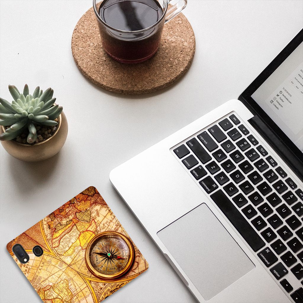 Met deze Samsung Galaxy A20e Book Cover met opdruk van een Kompas kun jij veilig elke richting op die je wilt, zonder dat je smartphone schade oploopt. Erg handig. Een kompas werkt overigens met magnetisme. Dat betekent dat een kompas af gaat wijken als die te dicht in de buurt van metaal of een andere magnetische bron komt. Deze stand case met kompas heeft ook een magneet aan de binnenzijde die ervoor zorgt dat de case niet zomaar open kan klappen. Onze stand cases met kompas bieden de allerbeste bescherming en zijn heel praktisch, wat blijkt uit onder meer het vakje aan de binnenkant en de standaard. Het kompas komt ook op alle zijden van de case te staan. Op deze stand case van leer en TPU (houder aan de binnenkant) kun je trouwens ook in no time zelf foto’s en teksten zetten.