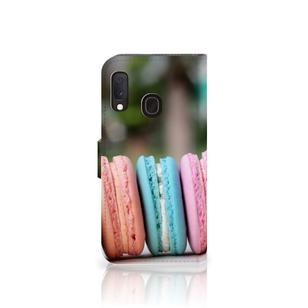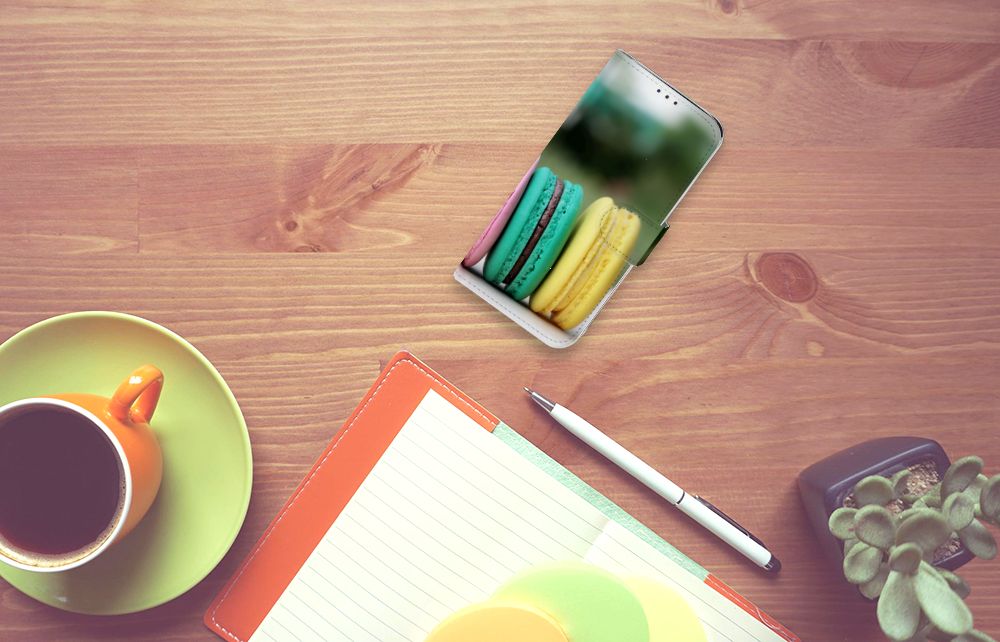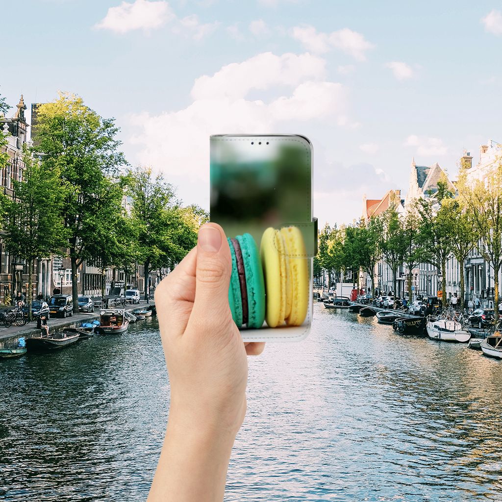 Dit hoesje met macarons is een zeer opvallende bescherming voor jouw smartphone. Macarons zijn Franse koekjes: kleine, rond en luchtig. Ze zijn aan elkaar geplakt met een zachte vulling. Ze worden in veel verschillende smaken gemaakt, herkenbaar aan de verschillende kleuren zoals chocolade (donkerbruin), mokka (middenbruin), kersen (rood), pistache (groen), aardbei (roze), framboos (karmijn), citroen (geel) en kokos (roomwit). Deze kleuren kun je natuurlijk ook zien op dit fraaie design hoesje met macarons. Heb je altijd al een Samsung Galaxy A20e Book Cover willen hebben met macarons? Grijp dan nu je kans. Een boekhoesje heeft zeer veel goede eigenschappen, zoals opbergvakjes aan de binnenkant en een magnetische sluiting in de vorm van een lipje aan de buitenzijde. Dit design hoesje met macarons wordt aan alle zijden bedrukt, zelfs het lipje krijgt een afbeelding van een macaron. De houder aan de binnenkant van het hoesje is van TPU.