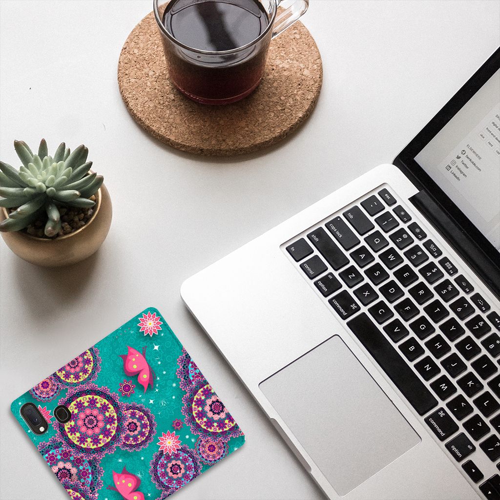 Deze opvallende Samsung Galaxy A20e Bookcase met Cirkels en Vlinders is een ware eyecatcher. De meeste vlinders hebben een onopvallende vleugelkleur en dat kun je van de soort op dit hoesje ook zeker wel zeggen. Wij kunnen deze opvallende vlinders en cirkels op een zeer handige stand case zetten. Deze hoesjes zijn zeer gewild. Met onze geavanceerde printer zetten we de print van opvallende vlinders en cirkels op alle zijden van het hoesje. De case met vlinders heeft aan de binnenkant een houder waarin je jouw creditcard of ander pasje kwijt kunt. De case heeft bovendien een handige standaard. Verder is je telefoon natuurlijk maximaal beschermd met deze stand case met print van opvallende en kleurrijke vlinders. De houder aan de binnenzijde van het design hoesje met opvallende vlinder print is van TPU.