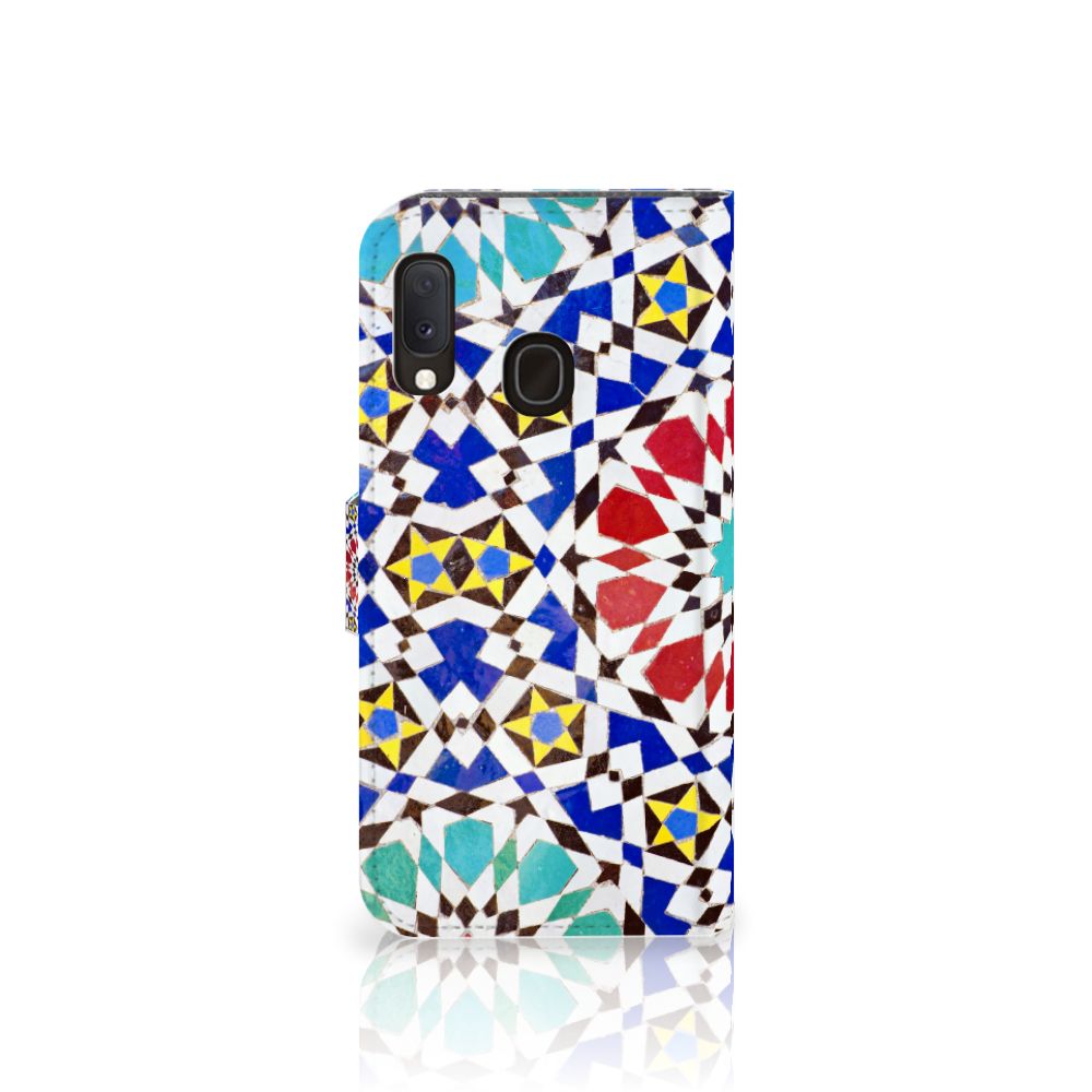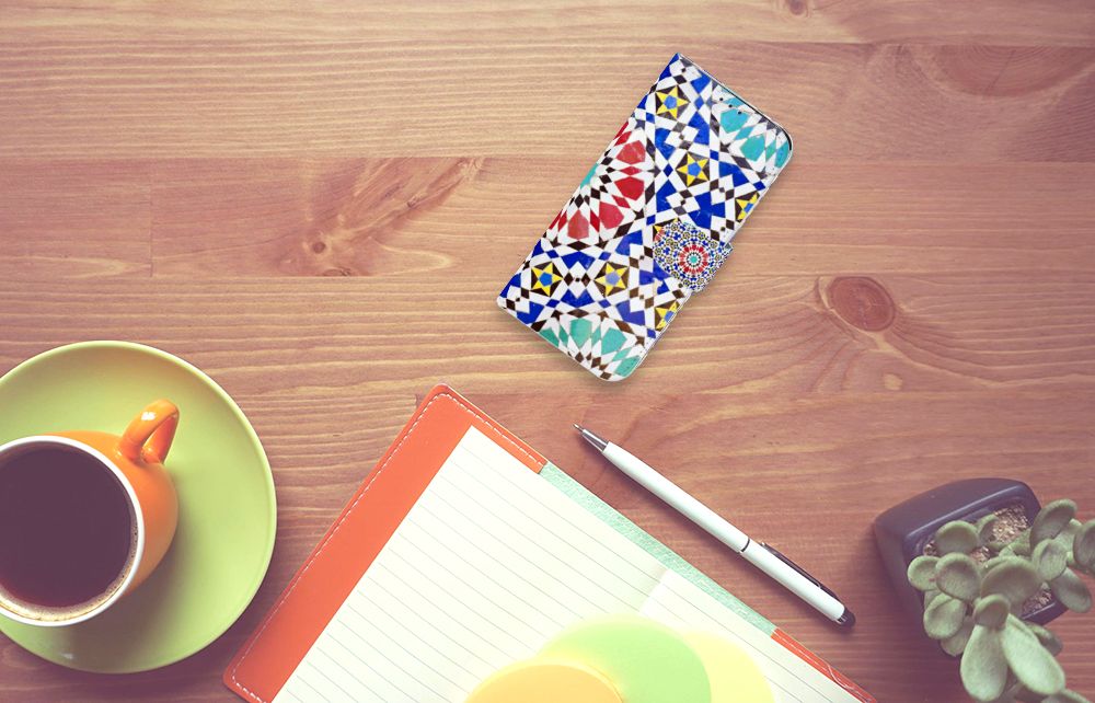 Aan design hoesjes met kunstvormen geen gebrek in onze uitgebreide collectie. Wat dacht je van dit design hoesje met Mozaïek . Dit is een kunstvorm waarbij een grote afbeelding wordt gemaakt uit een groot aantal kleine gekleurde steentjes (tesserae), die in een vloer of wand worden gemetseld. Deze gekleurde steentjes zie je terug op dit boekhoesje met design van mozaïek. Een boekhoesje is zo’n beetje de veiligste case die er bestaat. Een Samsung Galaxy A20e Bookcase met print zorgt voor een volledige bescherming van je smartphone en wordt aan alle zijden bedrukt met mozaïek. Een deel van de foto’s staat ook op het lipje aan de buitenzijde. Verder is de houder aan de binnenzijde van TPU. De Grieken en Romeinen beheersten de kunst al. Op diverse plaatsen in Europa zijn mozaïeken teruggevonden die tot op de dag van vandaag goed bewaard zijn gebleven. Met een hoesje met mozaïek blijft jouw telefoon in tact. Je pasjes en briefgeld kun je in de vakjes aan de binnenzijde stoppen