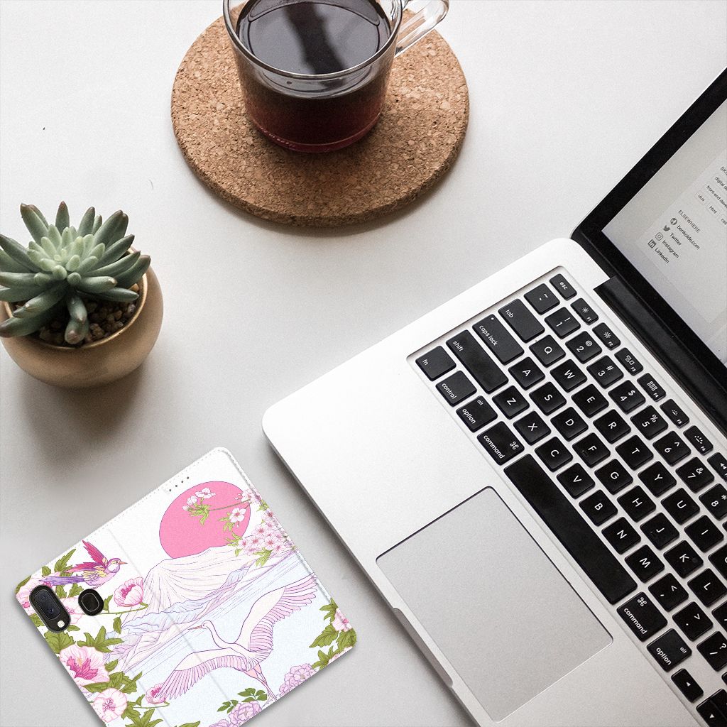 Met deze kleurrijke Samsung Galaxy A20e Hoesje maken met verschillende paarse vogels blijft jouw toestel in nieuwstaat. De paarse vogels maken het stand hoesje zeer bijzonder. Het hoesje met design Bird Standing in roze en paarse kleuren is een zeer opvallende bescherming voor je telefoon. Het kleurrijke stand hoesje met opvallende vogels beschermt jouw telefoon aan alle zijden en beschikt over een opbergvakje voor een pasje of briefgeld. De roze met paarse case sluit perfect af met de magneet aan de binnenzijde. De houder aan de binnenzijde van het schitterende stand hoesje is van TPU. Dit is ook nog eens zeer flexibel materiaal. Het pu leer aan de buitenkant oogt zeer chique. Kijk voor andere dieren op een design hoesje binnen deze fraaie collectie. Ook kun je zelf een hoesje ontwerpen met je favoriete dier.