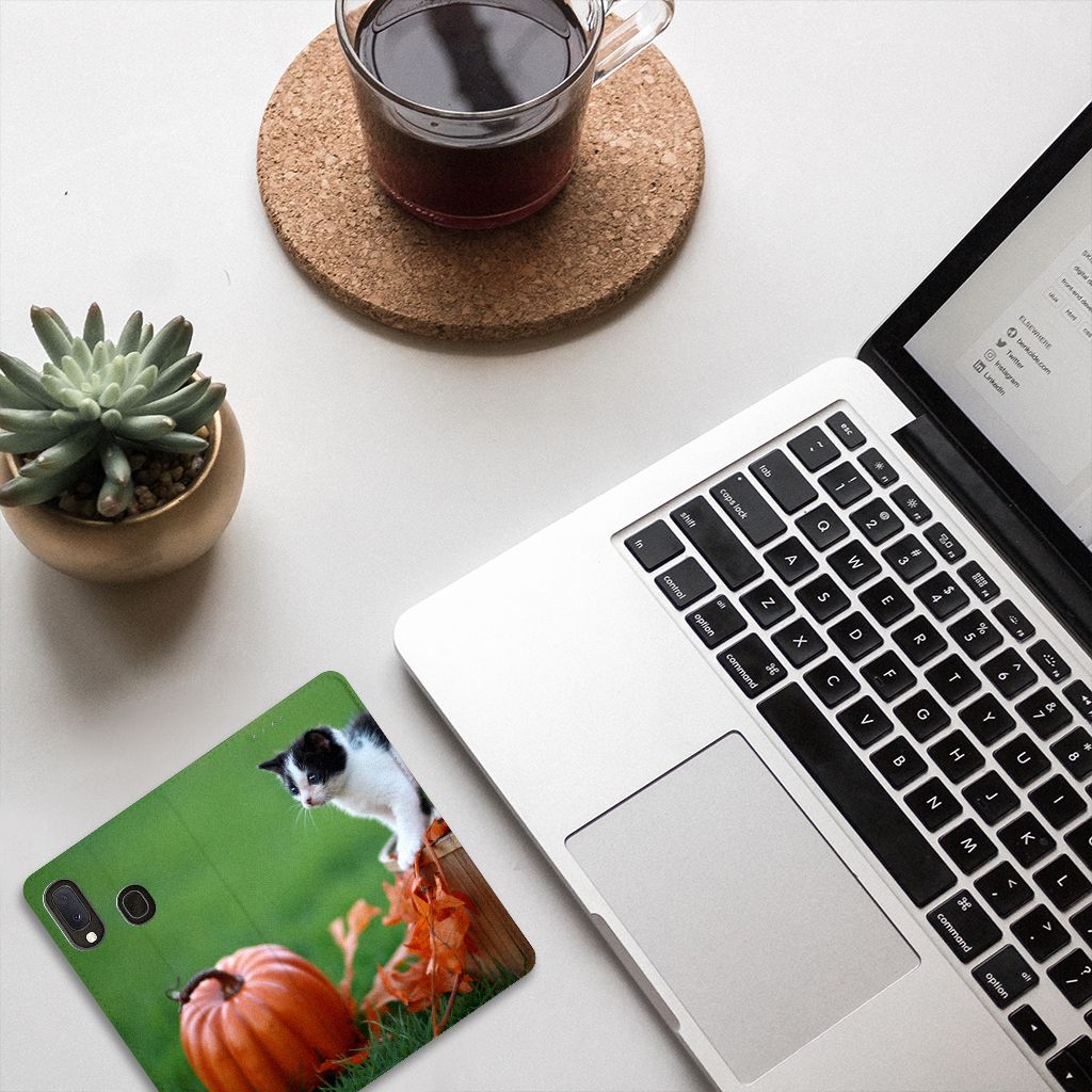 Een huisdier is goed voor je hart: de hoeveelheid stress in je lijf kan aanzienlijk verlagen als je een kat hebt rondlopen. Zelfs het aaien van een kat kan het stressniveau in je lijf al doen verlagen. De kat op dit smartphone hoesje is sowieso zeer aaibaar, gezien de blik en de houding van het dier. De herfstachtige bladeren en de pompoen geven dit stand hoesje met design een natuurlijke uitstraling. Jouw smartphone is met een Samsung Galaxy A20e Hoesje maken zeer duurzaam te noemen. Er is geen betere bescherming dan dit hoesje, dat ook nog eens 1 opbergvakje heeft en een standaard. Alle zijden van dit hoesje zijn bedrukt. Het hebben van een kat kan verzachtend werken, bijvoorbeeld na een heftige gebeurtenis. Het hoesje is aan de binnenzijde van TPU (houder).