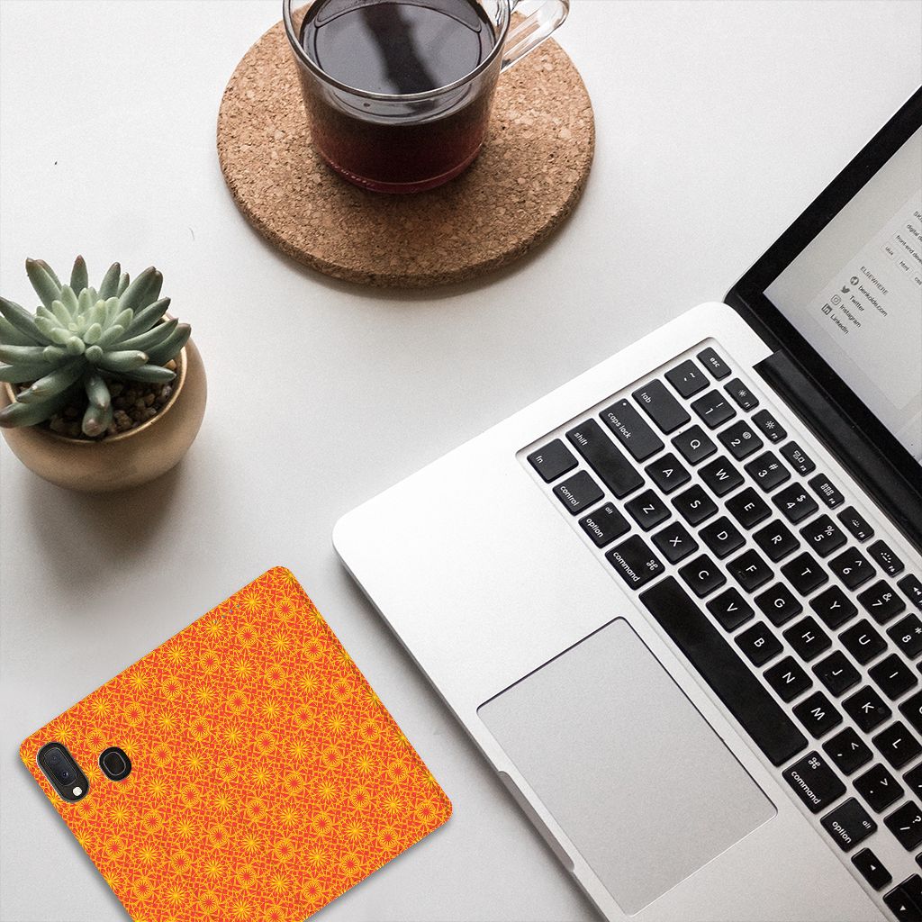 Batikken is een super oude kunstvorm. Met deze methode wordt een geweven stof met verf gedecoreerd. Er zijn stoffen gevonden in het Midden-Oosten en Azië van meer dan tweeduizend jaar oud. Wie had kunnen bedenken dat we zo’n mooie batik-print duizenden jaren later zelfs op telefoonhoesjes zouden terugvinden? Dit Hoesje met Magneet in voor je Samsung Galaxy A20e heeft een mooie oranje kleur en een prachtig symmetrisch patroon. Vanwege de felle kleurtjes is dit hoesje onwijs vrolijk. Het hoesje heeft binnenin één vakje voor een pasje en een magnetische sluiting aan de binnenkant. Verder heeft de batik orange-hoes een houder van TPU. Het leuke van een standcase is dat je hem eenvoudig neer kunt zetten. Zo heb je je handen vrij als je bijvoorbeeld een video wilt kijken op je smartphone.
