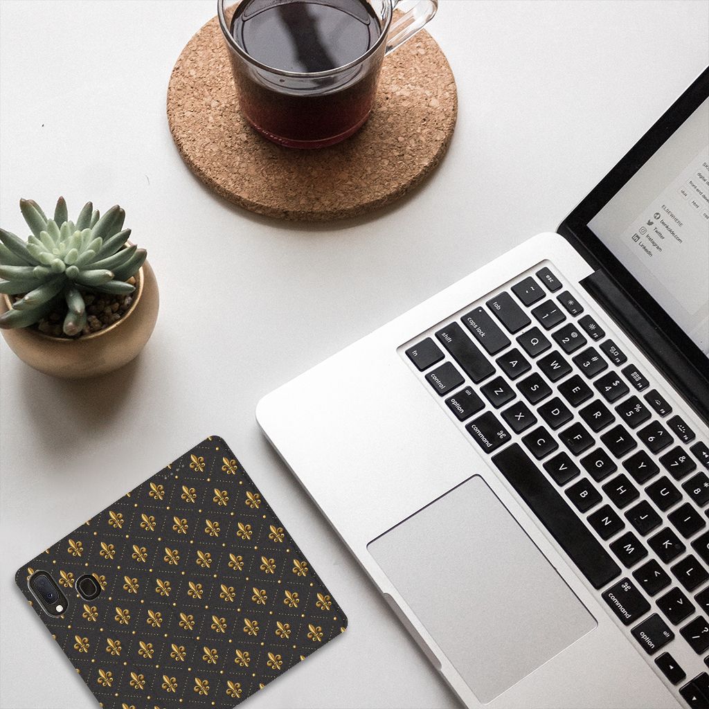 Hét symbool van het Franse koningshuis, de fleur-de-lis (ook fleur-de-lys of Franse lelie), mag natuurlijk niet ontbreken in onze collectie design hoesjes. De naam betekent letterlijk lelie-bloem. Deze Franse Lelie kunnen we op verschillende soorten cases printen, zoals een zeer praktische en onderscheidende stand case. Een Samsung Galaxy A20e Hoesje met Magneet met Franse Lelie ziet er niet alleen ontzettend chique uit, het is dankzij onder meer het opbergvakje aan de binnenzijde en de standaard zeer praktisch. Het is niet helemaal duidelijk welke bloem model heeft gestaan voor het Franse symbool. Wel is duidelijk dat de Franse lelie volledig tot wasdom komt op deze handige stand case. Het beschikt verder over een houder van tpu en een magnetische sluiting aan de binnenkant. We bedrukken de case op het moment dat jij deze bestelt.