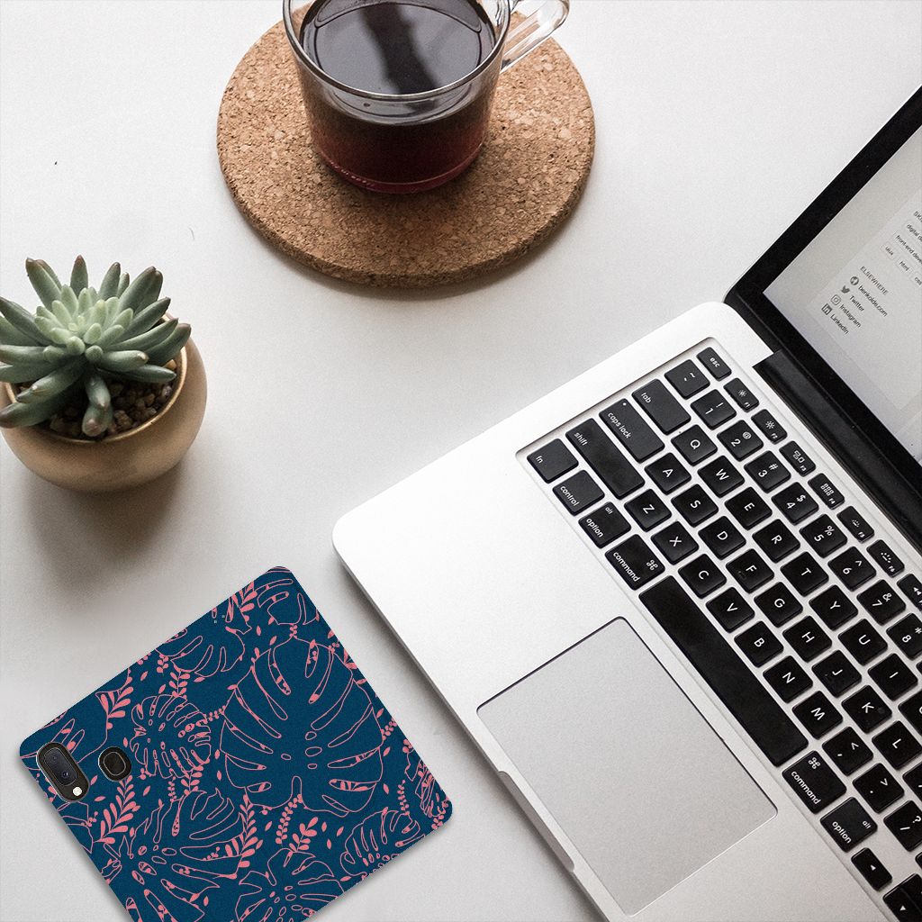 Je voelt je verbonden met de natuur als je kiest voor deze Samsung Galaxy A20e Smart Cover met print van roze bladeren op een blauwe achtergrond. De print bestaat uit verschillende roze bladeren en dit zorgt voor een fraai decoratief geheel. Met dit patroon van roze bladeren op een blauwe achtergrond creëer je een opvallende uitstraling voor jouw smartphone. Jij doet er verstandig aan om je telefoon te beschermen met dit design hoesje met roze bladeren op een blauwe achtergrond, die staan op een stand case. Dit hoesje kenmerkt zich onder meer door het handige vakje aan de binnenzijde en de magnetische sluiting aan de binnenzijde. Voel jij jezelf happy bij een beeld van roze bladeren op een blauwe achtergrond, dan is deze stand case met print een uitstekende optie. Het beschermt jouw telefoon aan alle zijden. Het TPU aan de binnenzijde klemt zich perfect om jouw smartphone.