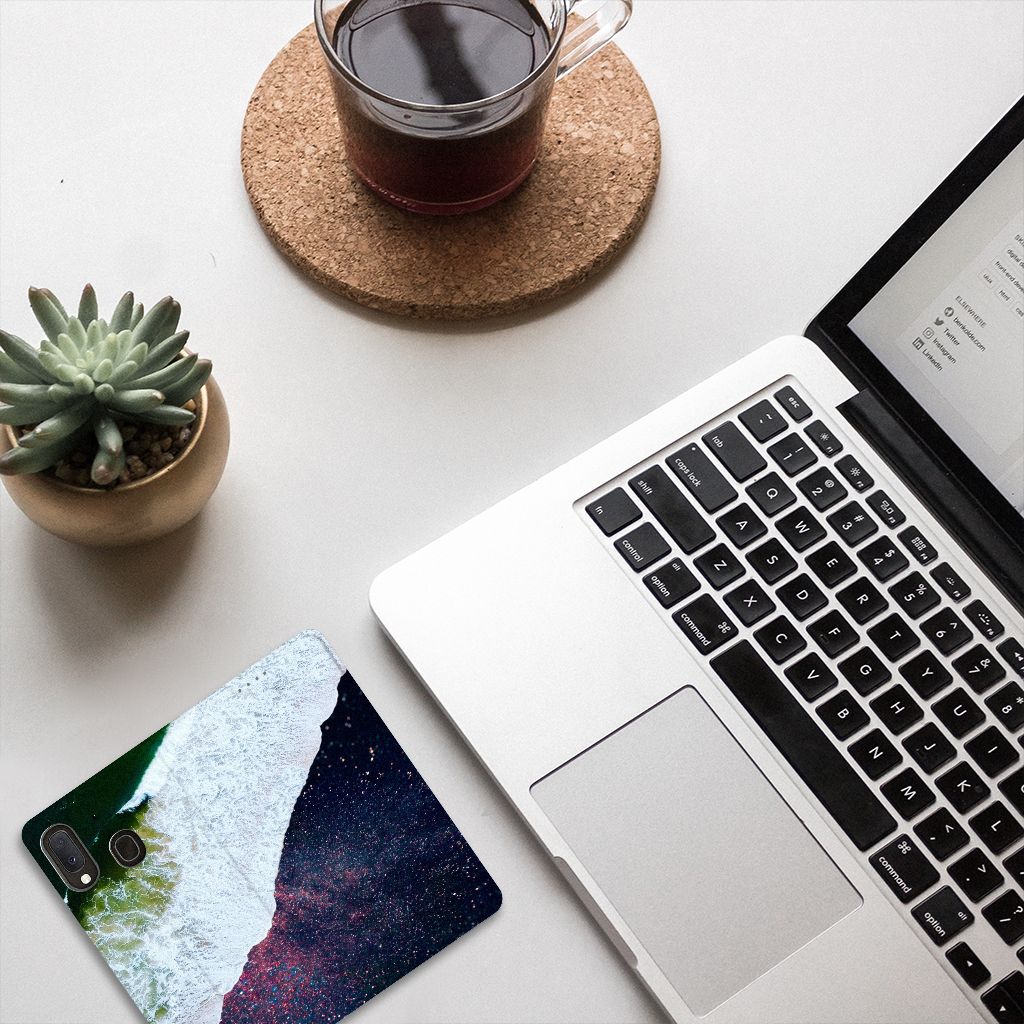 Ben je een beetje een artistiek type? Dan kan je wel eens enthousiast raken van dit smartphonehoesje. ‘Sea in Space’, zo noemt onze grafisch designer dit ontwerp. Dus mensen die van zon en zee kunnen genieten en tegelijkertijd van science fiction houden zullen deze case ongetwijfeld mooi vinden. Een beetje glitter en glamour zou je met een beetje fantasie ook nog wel kunnen ontdekken in dit design hoesje. Dit artistieke kunstwerkje is voor heel weinig geld te bestellen op onze website. Je krijgt er maximale bescherming van je Samsung Galaxy A20e voor terug. Het design staat op een Stand Case. Deze case beschermt jouw telefoon aan alle kanten en beschikt over een 1 opbergvakje en een speciale standaard. Het hoesje wordt afgesloten met een magneet aan de binnenzijde. De houder aan de binnenzijde is van TPU.