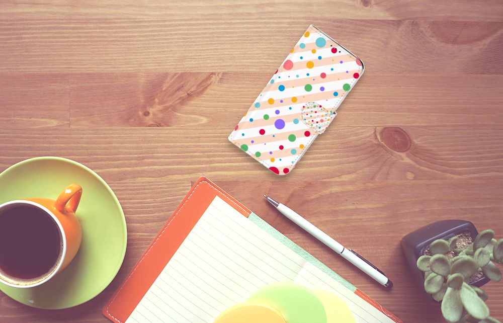 Een Samsung Galaxy A20e Telefoon Hoesje met verschillende kleuren stippen is een schitterende bescherming van jouw smartphone. Het boekhoesje met het design Dots in alle kleuren van de regenboog komt voor jou als geroepen. Maak je geen gebruik van dit zeer mooie hoesje, dan kan het met jouw smartphone een beetje beroerd aflopen. Dit mooie boekhoesje met verschillende kleuren stippen zorgt voor een volledige bescherming van je smartphone en wordt aan alle zijden bedrukt. Sommige stippen staan ook op het magnetische lipje aan de buitenzijde. Verder is de houder aan de binnenzijde van TPU. Jouw telefoon is dus zeer goed opgeborgen en kan geen kant op. Met een hoesje met stippen in verschillende kleuren op alle zijden blijft jouw telefoon volledig in tact. Heb je liever een boekhoesje met stippen in andere opvallende kleuren? Ontwerp dan zelf case met je eigen foto’s en teksten!