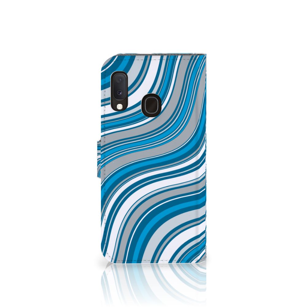 Zeer cool, dit hoesje met vooral blauwe kleuren, die in een golvende beweging jouw telefoon van een mooie uitstraling voorzien. Tijdens een zonnige vakantie aan zee is jouw smartphone perfect beschermd met dit telefoonhoesje. Het design Waves Blue van dit smartphone hoesje doet lichtjes denken aan een lolly, waarmee je een klein kind zeer blij maakt. Jouw Samsung Galaxy A20e zal er ook zeer vrolijk uitzien samen met dit design hoesje. De witte en grijze kleuren staan in mooi contrast met het blauw, waardoor de uitstraling van deze accessoire zeer mooi is. Ook voor andere kleuren kun je natuurlijk uitstekend terecht in ons assortiment. Het design staat op een boekhoesje. Dit Telefoon Hoesje beschermt jouw telefoon aan alle zijden en beschikt over verschillende opbergvakjes voor pasjes en briefgeld. De case sluit perfect af met het lipje aan de buitenkant. De houder aan de binnenzijde is van TPU.