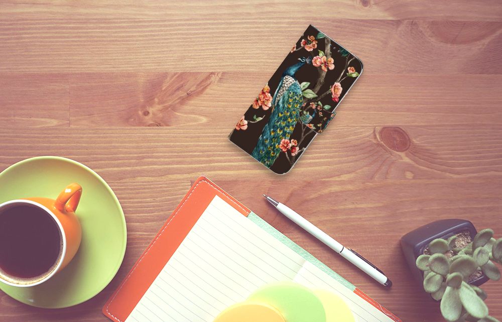 Samsung Galaxy A20e Telefoonhoesje sluit met magnetisch lipje Pauw | Bloemen