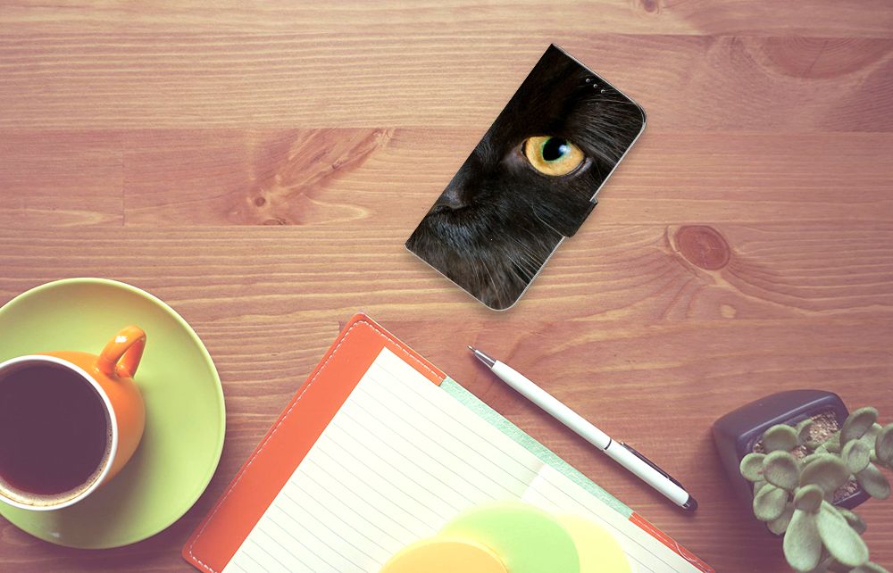 Zwarte katten zijn bijzonder innemende dieren, die een gevoel van mysterie om zich heen dragen, vandaar dat ze op zeer prominente wijze op dit design Telefoonhoesje met Pasjes staan. Hiermee valt dit design hoesje goed op en moet je zelfvertrouwen hebben om deze bij je te dragen. Dit Samsung Galaxy A20e hoesje is behalve bijzonder ook erg handig en sterk. Het TPU aan de binnenkant en het leer aan de buitenkant houden jouw telefoon intact wanneer je hem op de grond zou laten vallen. Bovendien kun je in dit hoesje wel 3 pasjes kwijt, zodat jij al jouw belangrijke bezittingen op dezelfde plek kunt bewaren. Op deze manier raak je jouw pasjes minder snel kwijt en heb je alles bij de hand. Mocht je nu wel een zwarte kat op jouw bookcase willen hebben, maar deze te heftig vinden, dan bieden wij de mogelijkheid om een hoesje te personaliseren met eigen foto’s.