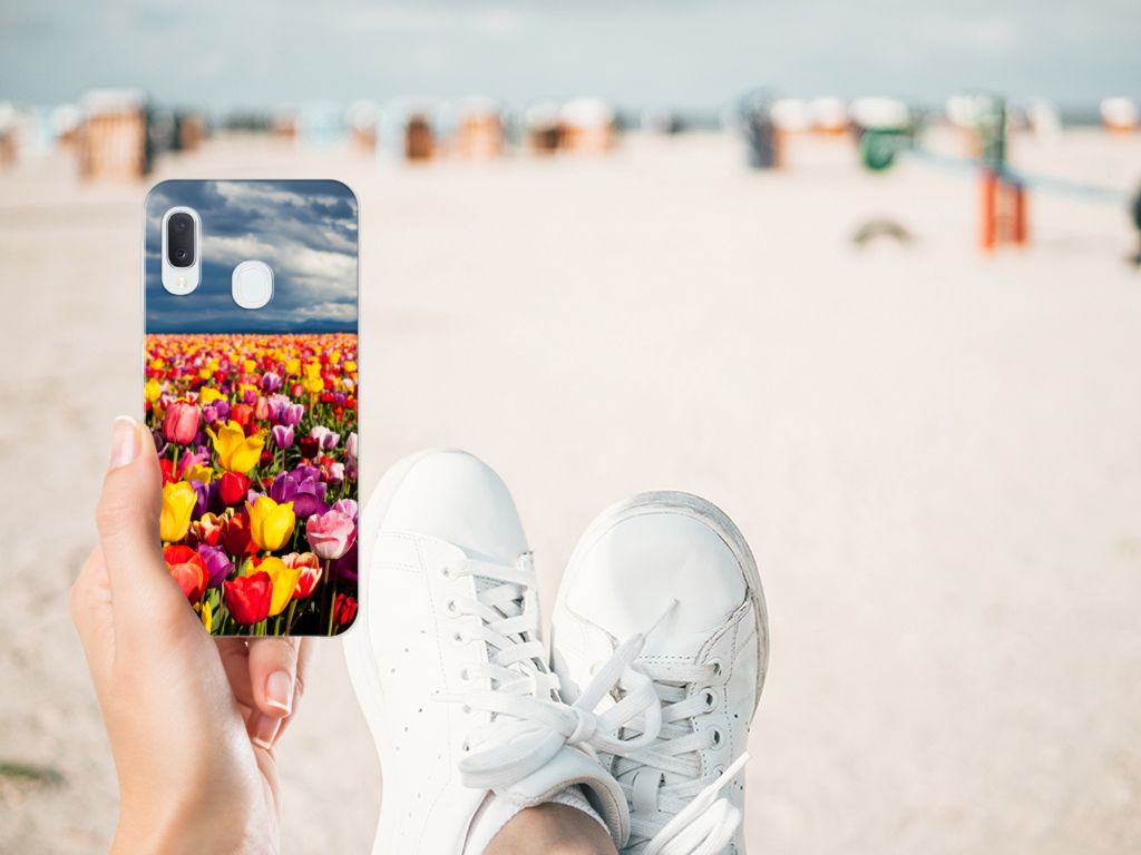 De tulp is een oer-Nederlandse bloem en heeft een lange geschiedenis. Deze Samsung Galaxy A20e TPU Case met Tulpen ziet er bijzonder kleurrijk uit. Dit fleurige smartphone hoesje geeft een bijzondere bescherming van jouw apparaat. Tulpen zijn ideaal voor een kleurrijk begin van het tuinseizoen. Iedereen wordt er vrolijk van om te zien hoe deze bloemen het voorjaar kleur geven en het begin van de warmere tijd van het jaar aankondigen. Dan kan het toch niet anders of jij wordt heel erg blij van deze tpu case met tulpen? Deze tpu case is zeer flexibel en past altijd in je broekzak. Het materiaal is zeer elastisch en onbreekbaar. De case wordt niet aan alle zijden bedrukt met tulpen. De randen blijven transparant. Je kunt ook zelf een tpu case maken met daarop jouw favoriete bloem.