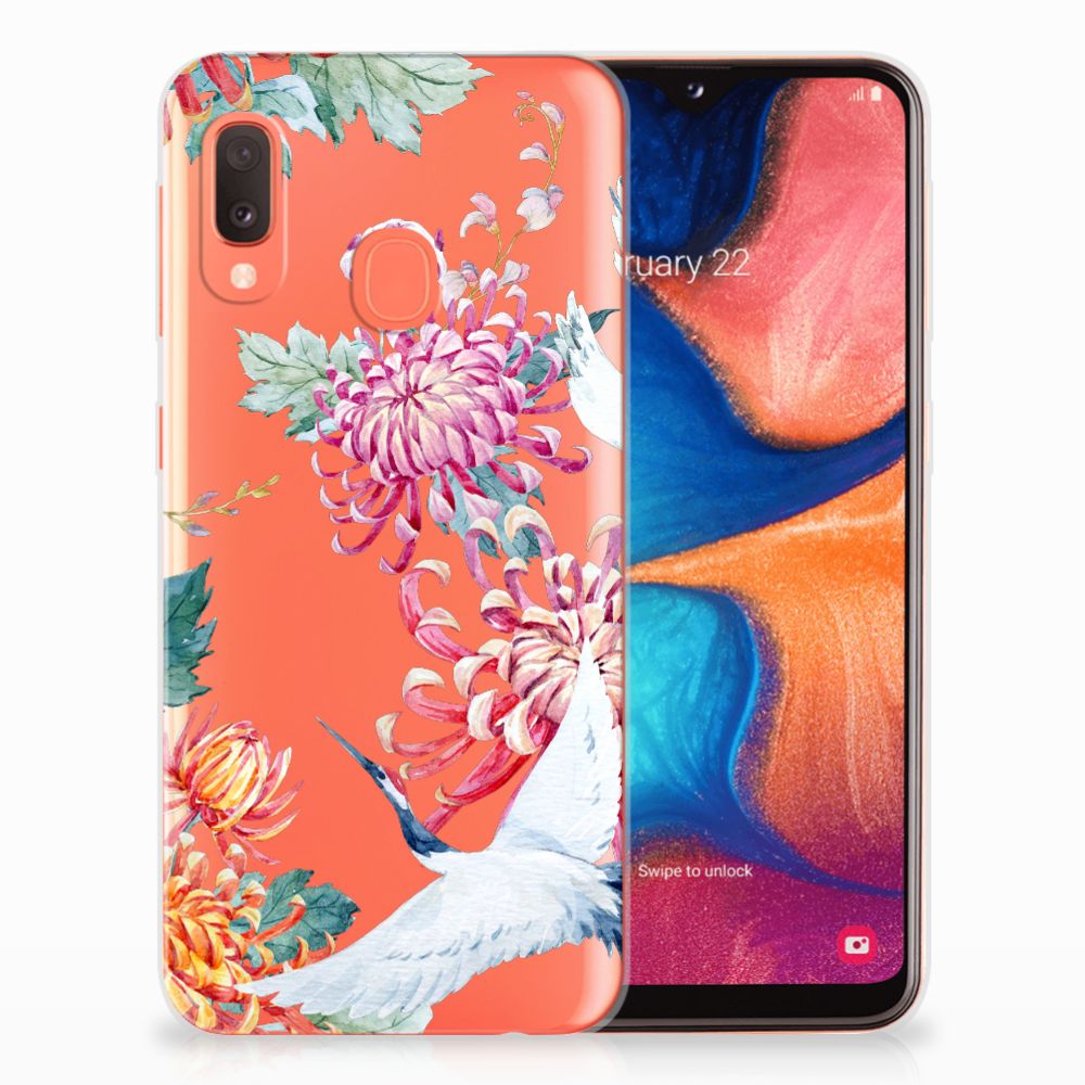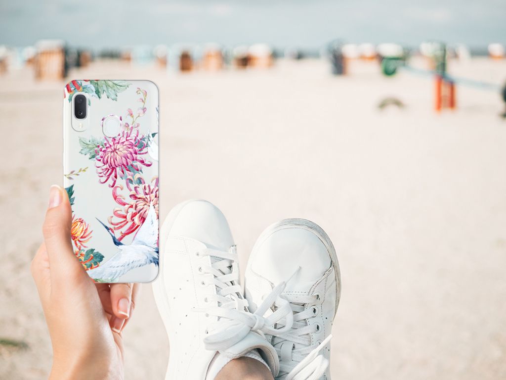 Verspreid over de hele wereld leven 19 soorten ooievaars. De spanwijdte – dat is de afstand van vleugeltip tot vleugeltip – van een volwassen ooievaar kan 2.50 meter bedragen. De gebieden waarin de ooievaar broedt, liggen in heel Europa, het Midden-Oosten, West- en Centraal-Azië en Noordwest-Afrika. Het ideale leefgebied van de ooievaar is een half open tot open landschap met veel afwisseling in grondgebruik en begroeiing. De begroeiing op dit design hoesje, in allerlei verschillende kleuren, zal niet alleen voor de ooievaars fraai zijn. Jij zult er zelf ook heel vrolijk van worden. Het in het oog springende design staat op een TPU Hoesje. Dit telefoonhoesje wordt alleen aan de bovenkant bedrukt en is zeer flexibel. De randen van het hoesje blijven transparant en worden niet bedrukt. Met dit hoesje past jouw Samsung Galaxy A20e altijd in je broekzak.