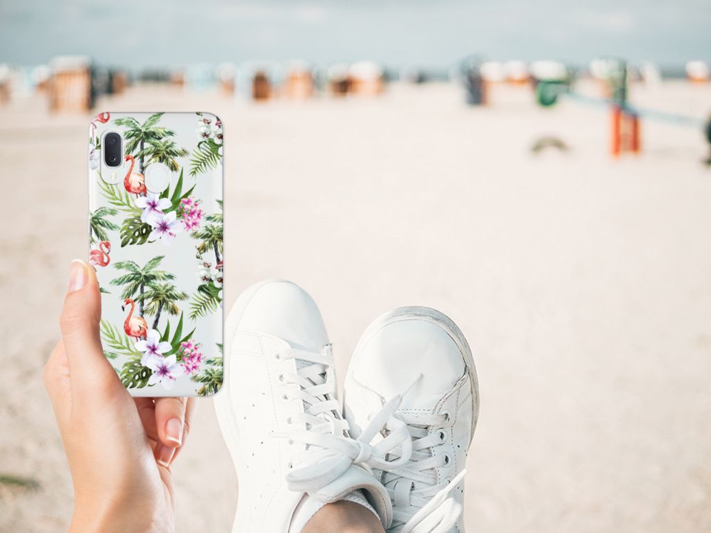 Een Samsung Galaxy A20e TPU Hoesje met Flamingo Palms is in vele opzichten bijzonder. De rode flamingo op het hoesje kent zijn oorsprong in het Caraïbische gebied. Stel dat je in deze regio vakantie aan het vieren bent, dan val je zonder meer op met dit hoesje met flamingo’s en palmbomen. Deze tpu case beschermt je telefoon met name aan de achterkant en de zijkanten. Deze tpu case met flamingo’s en palmbomen is op maat gemaakt voor jouw smartphone en ligt altijd goed in je hand. De TPU case met flamingo’s en palmbomen en is ook zeer flexibel. De zijkanten van case blijven transparant.